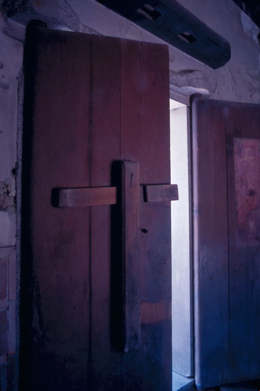 7. Heavy wooden door, more than a century old, continues its task of keeping intruders out.