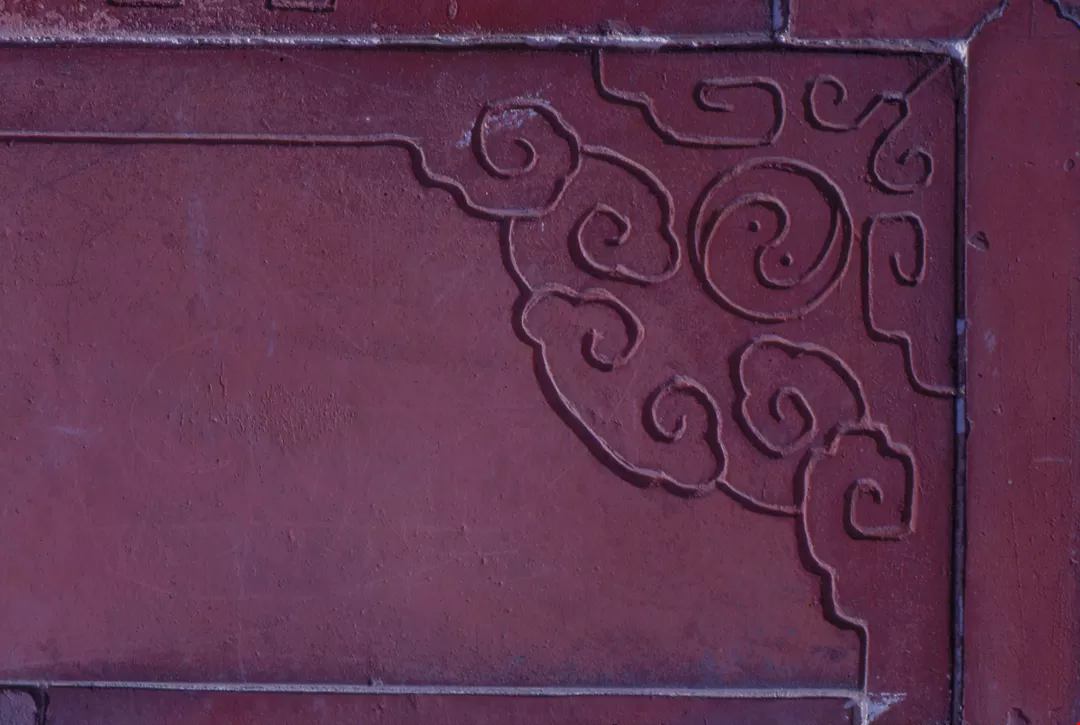 3. Ornamental design of a bat, etched in brick. This is meant to symbolize luck, as the Chinese characters look and sound much alike.