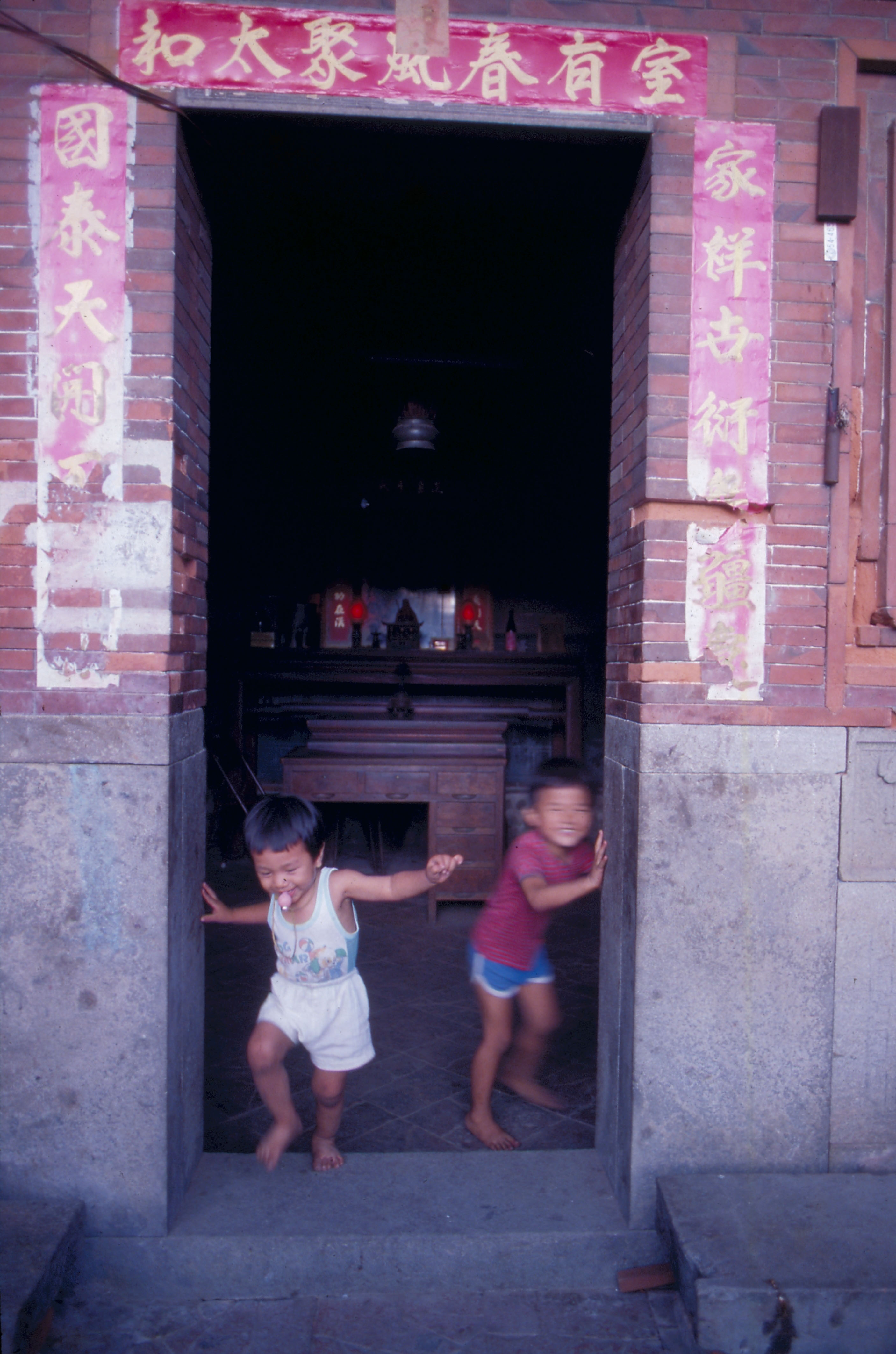 1. This stone washboard continues to be used by descendants of the Lin family. 2. Behind the copper doorknocker lies the century-long story of the aging mansion. 3. Youngsters frolic in a sideroom, oblivious to ancestors' hardships. 4. The younger generation's feeling toward the old house is already different from that of their predecessors.