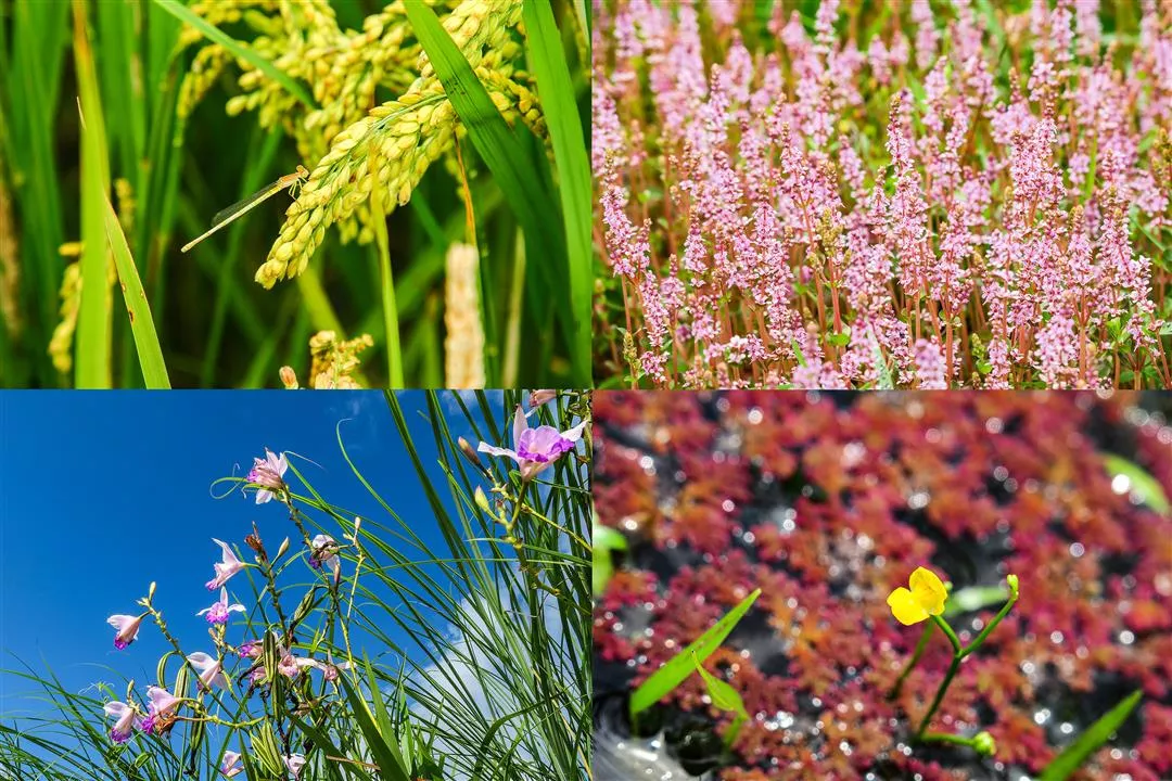 In these fields that are kept flooded year round, one can see many threatened or endangered species including the flowering aquatic plants small floatingheart (Nymphoides coreana) and Deinostema adenocaulon, while on the embankments between fields there is Utricularia bifida, a species of carnivorous bladderwort, and on the terrace walls one finds the bamboo orchid (Arundina graminifolia). In addition, there are rare species of fauna such as the Chinese rice fish (Oryzias sinensis), the yellow-bellied sprite (Ceriagrion melanurum, a species of damselfy), and the crab-eating mongoose (Urva urva). All these testify to the fact that this pristine land provides a rare refuge for many plants and animals.