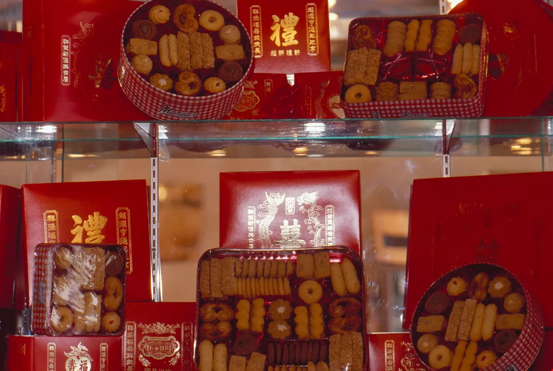 The Chinese New Year's Season is also wedding season. At this time of year, future brides and grooms going hand in hand to present round, flat wedding cakes to friends and relatives is a common sight. Wedding cakes are traditionally given as a prelude to the wedding ceremony, and a way of spreading news of the marriage.