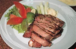 Mouthwatering authentic Aboriginal food: salted wild boar, hearts of vines and okra.