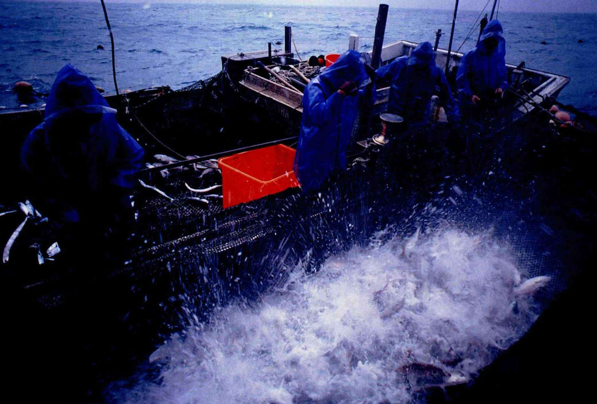 Fishermen from Tung'ao Rural Township in Ilan gather in a "fixed net," which is fixed in place at sea and allows fish in but not out. With the rise in the number of fishing ships and advancement of fishing technology, seafood is now widely available.