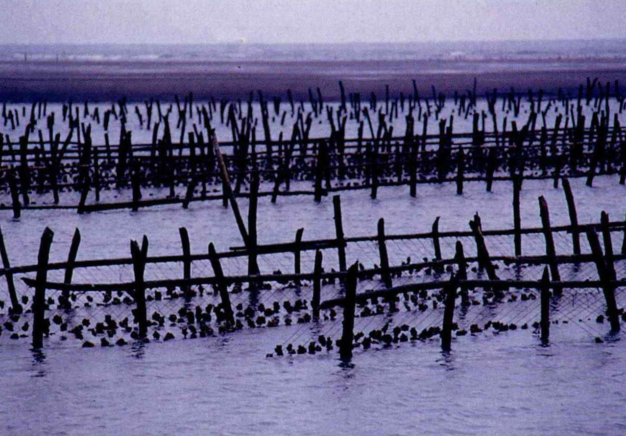 Thanks to aquaculture, oysters are now big, fat and abundant. However, because of river pollution, in recent years oyster banks have had to be moved ever farther out to sea. (photo by Diago Chiu)