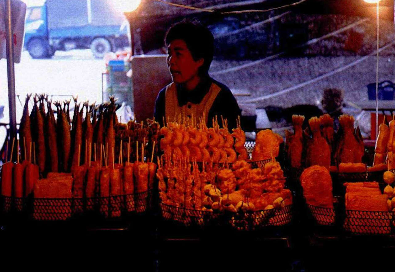 When it came to snack food, there were no McDonald's, but along the coast street vendors sold three small crabs stacked together, and even lent you a small stool so you could gaze out to sea as you chewed. The leftover shells could be used to play ang-a-biao (a children's game of flipping shells onto one another). At the movie theater, long before there was popcorn, you could buy snails prepared with soy sauce, garlic, and hot pepper, sold cheaply in little paper packages made from pages torn out of telephone books.