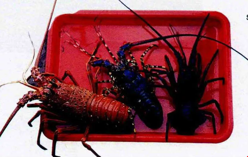 Taiwanese have always loved scallops (above) and lobster (left), but these markets are now completely dominated by imports. The photo shows three lobsters of different national origins.