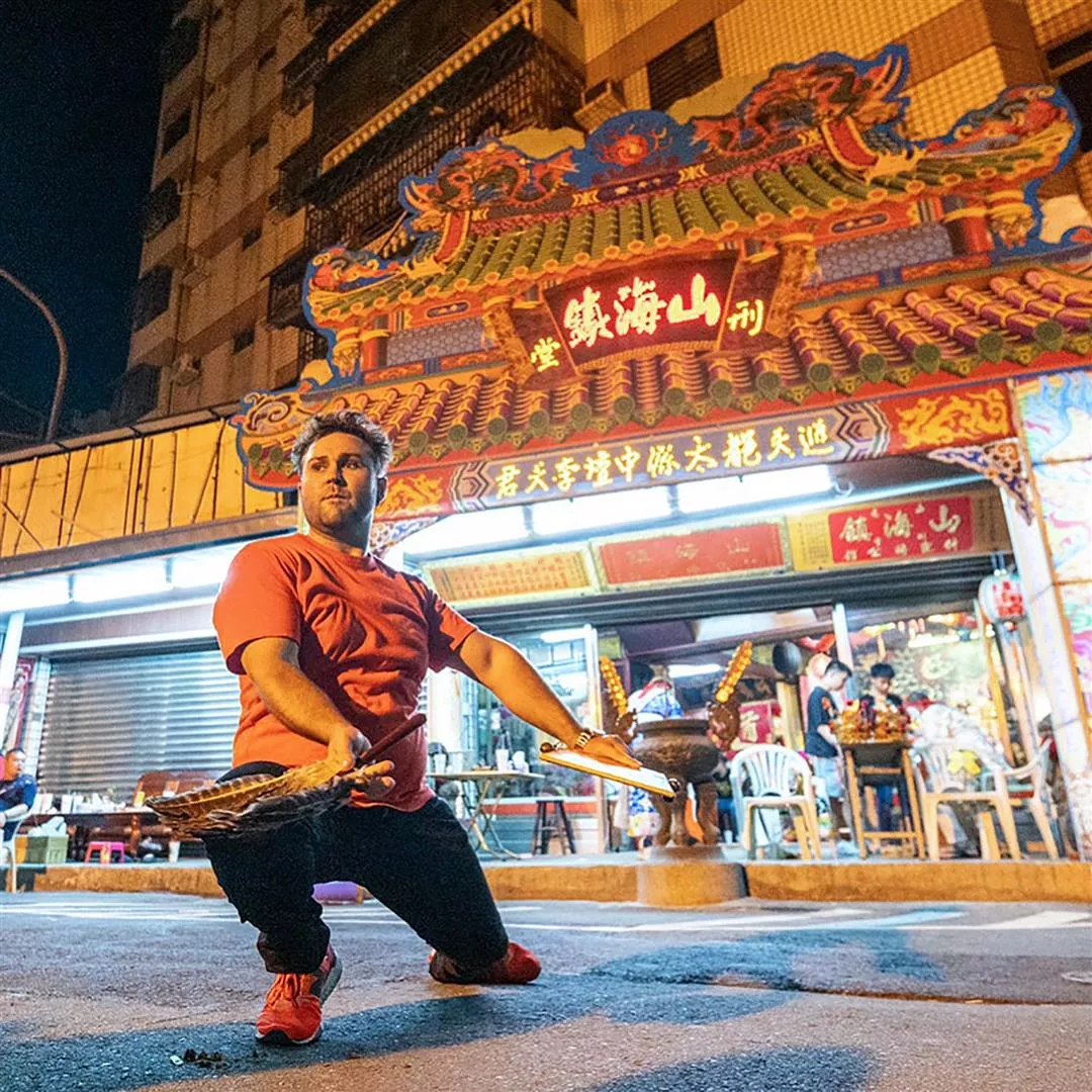 Click on Reed Giovannetti’s personal Instagram account, named findmeinchiayi, and you will see photos not only of Chiayi’s food and attractions, but also of temples and deity statues. Among them are three posts of him practicing at Chiayi’s Shanhaizhen Temple for a part in their traditional "Shejiajiang" performances.