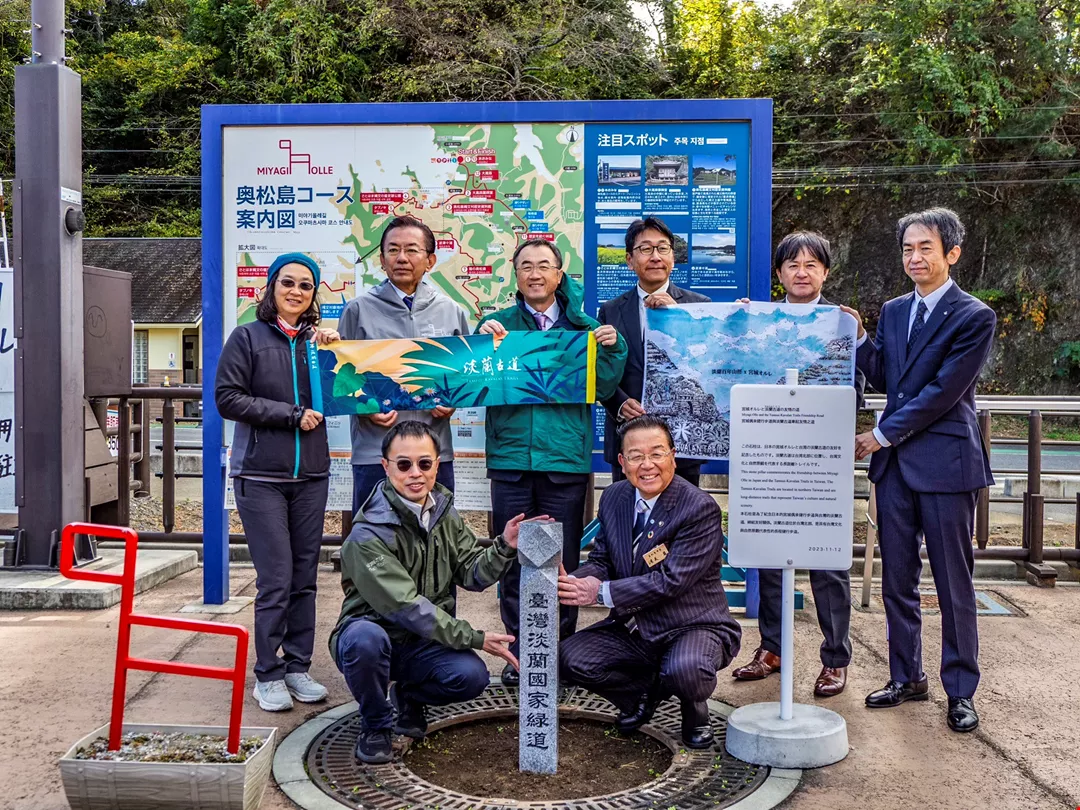 It was TMI Trail that arranged for four trails of the Miyagi Olle Trails system and four trails of the Tamsui–Kavalan Trails system to be matched up in four pairings of similar trails. Even before the two sides had met, they agreed to these “arranged marriages.” In fact, representatives of some of the Taiwanese authorities involved first visited the Miyagi Olle Trails only in November of 2023, when they went to Japan for the unveiling of the trail markers to be used under the friendship agreements.