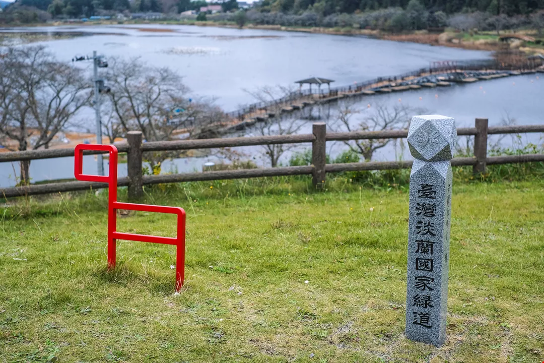 As well as enjoying the rice-field scenery, visitors to the Tome Trail should not fail to visit the main gate and stately gardens of the Korinji Temple, a Miyagi Prefecture heritage site. Also, don’t forget to take a commemorative photo with the red horse trail marker of the Olle Trails and the stone pillars bearing the logo of the Tamsui–Kavalan: the coupled dipteris fern.