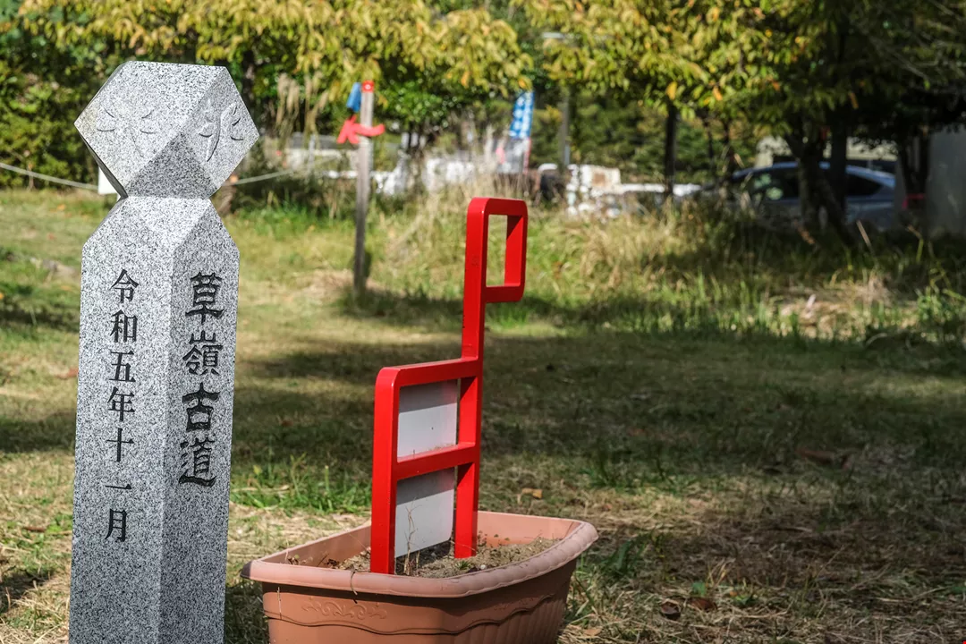 Along the Kesennuma/Karakuwa Trail in Japan one can see symbols of the Taiwan–Japan friendship trails agreements—a stone pillar with coupled dipteris fern logos for Taiwan’s Tamsui–Kavalan Trails and a red horse for Japan’s Miyagi Olle Trails.