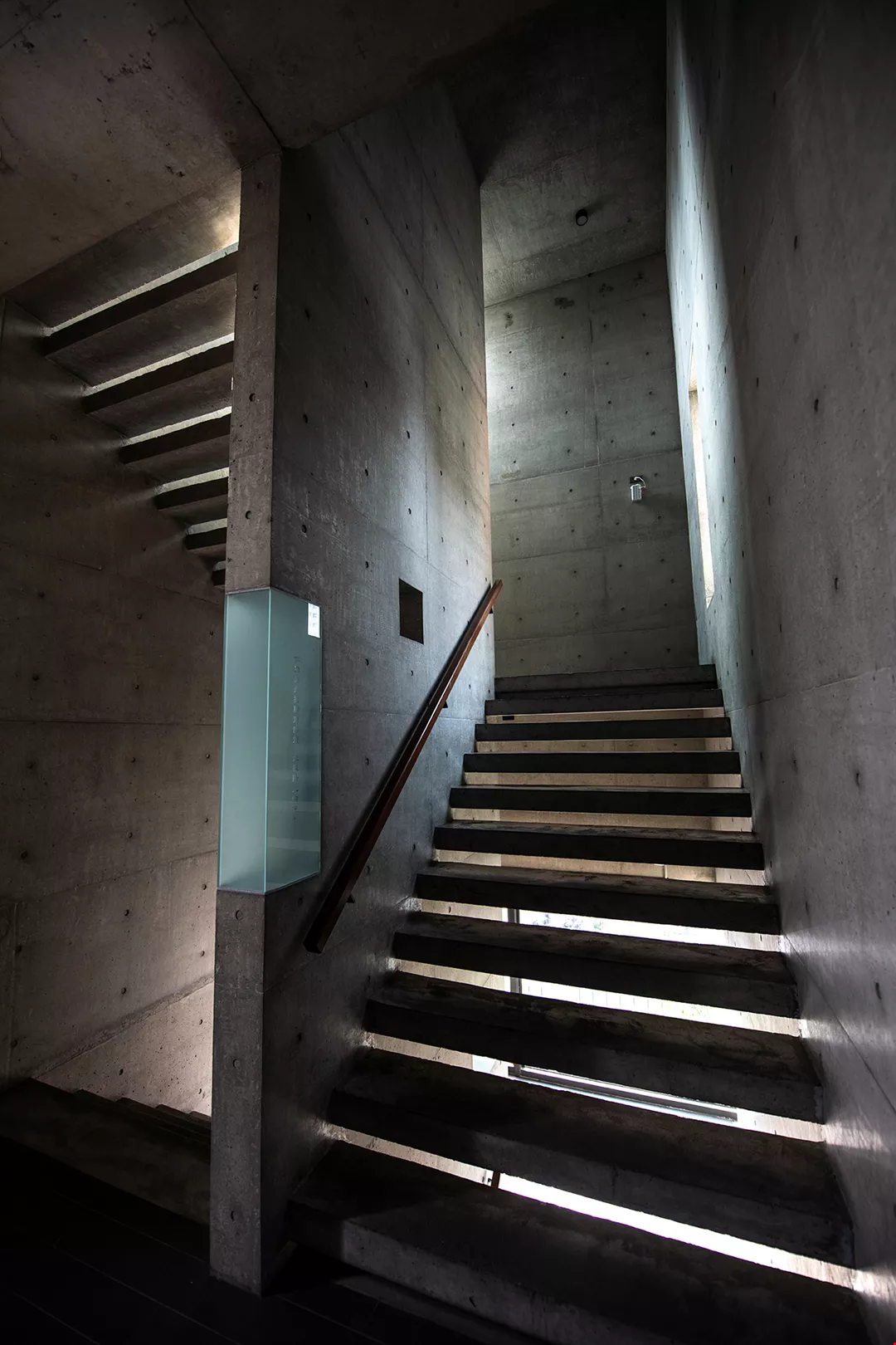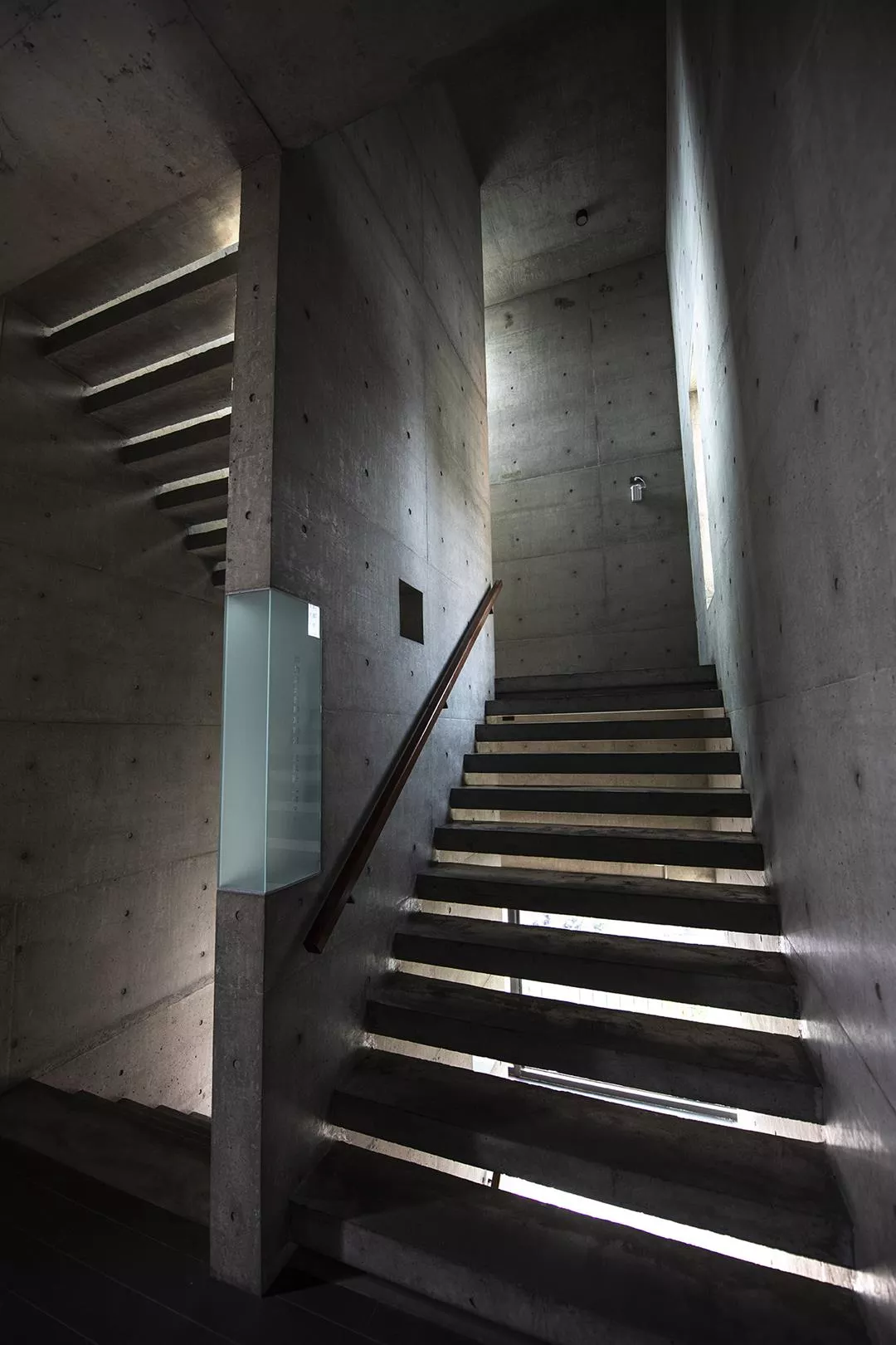 We are guided by light through long passageways and staircases. The elongated spaces enable us to gather our thoughts before we enter into communion with God.
