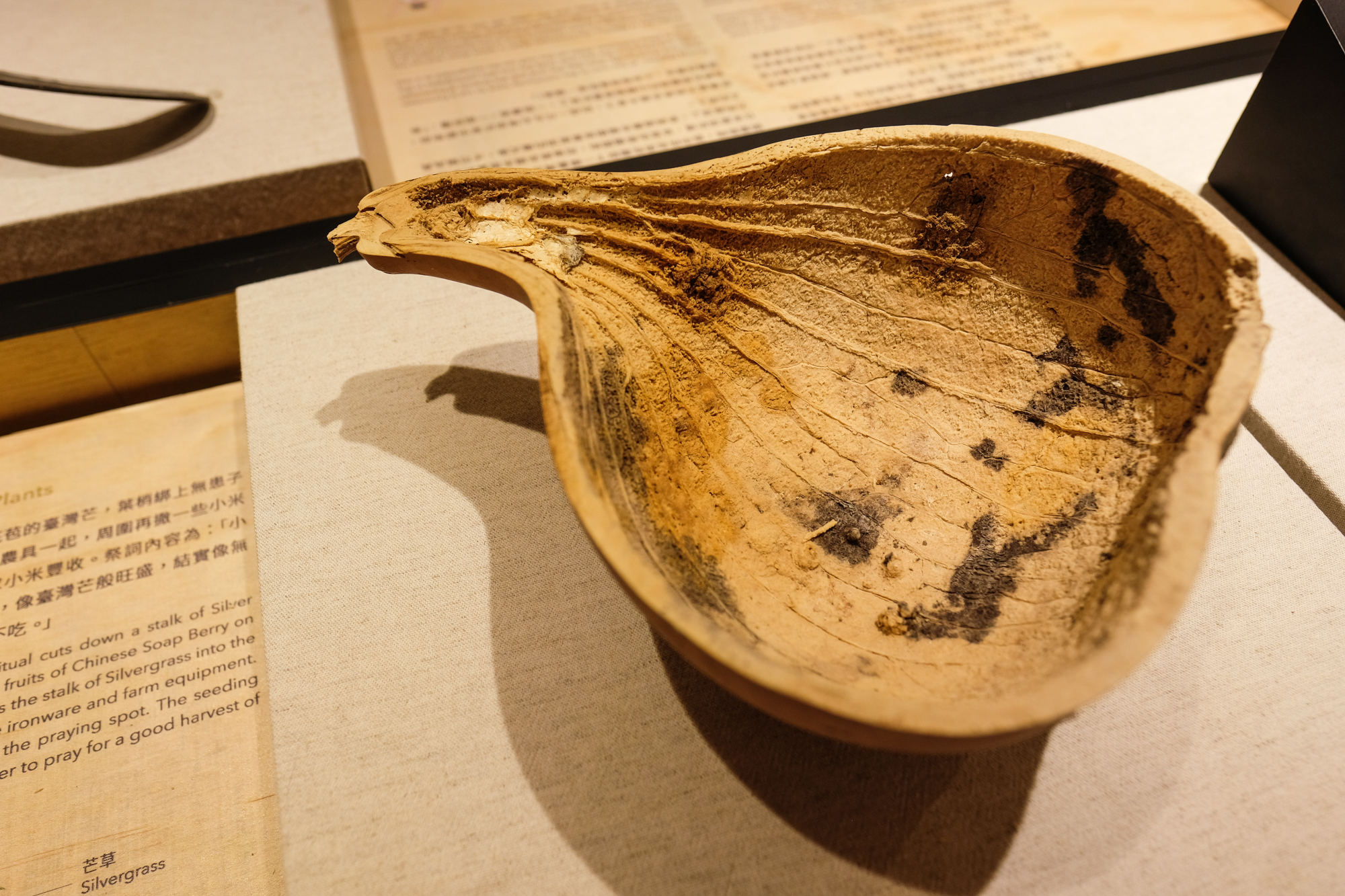 As noted in the EFFEC’s permanent exhibition, indigenous peoples used orange jasmine (Murraya exotica) to reduce swelling, while the Truku people applied Taiwan kudzu (Pueraria montana) to stanch bleeding. For the Rukai and Paiwan peoples, giant elephant’s ear (Alocasia odora) not only can be used to wrap foods, but also can be mashed into a medicinal poultice. In addition, indigenous peoples mostly employ shell ginger (Alpinia)—of which there are 18 species in Taiwan, 12 of them endemic—to make utensils and summer sleeping mats, but it is also an ingredient in the Japanese medicinal candy Jintan.