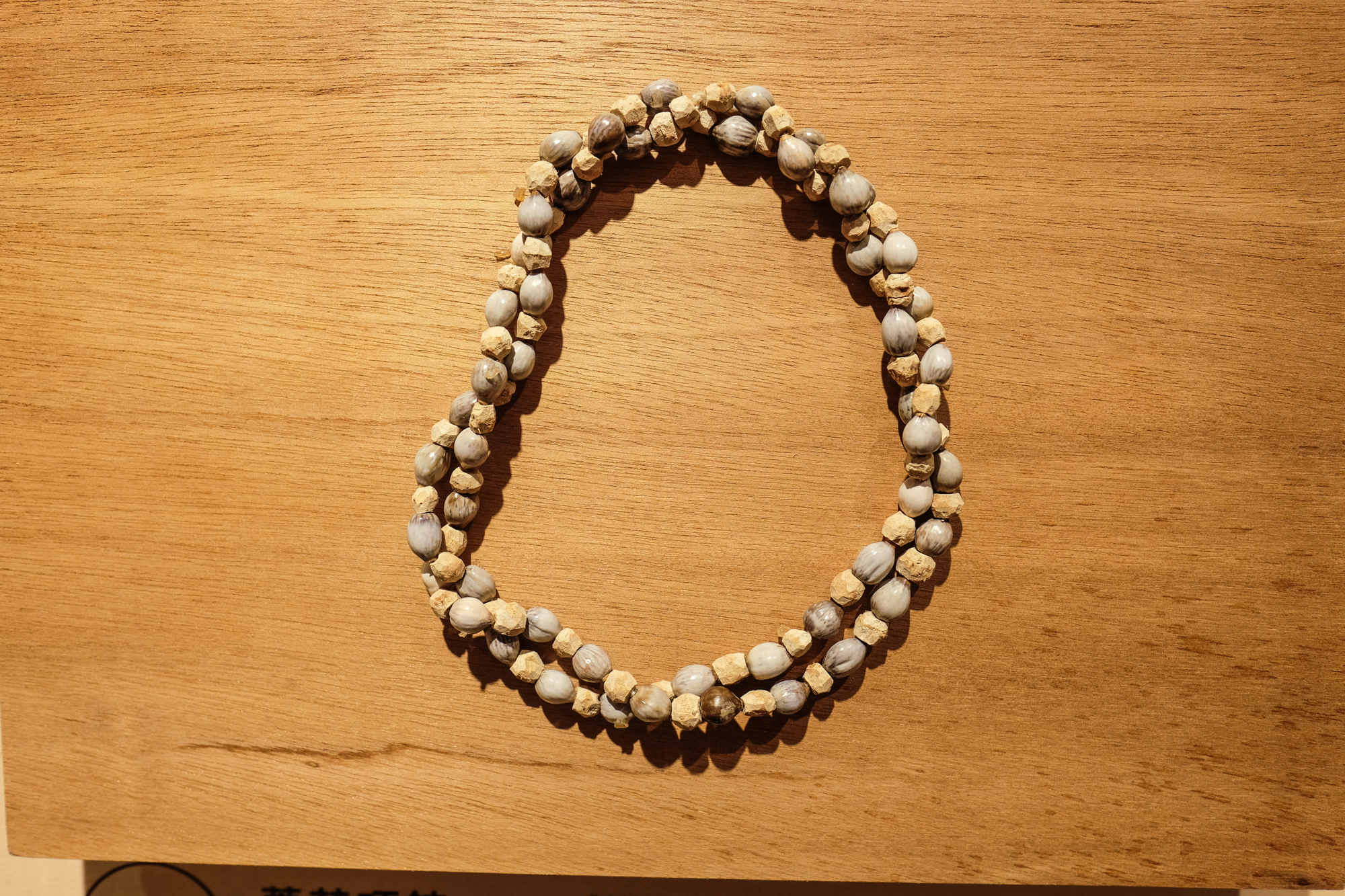 The Bunun people make necklaces for children from grassy-leaved sweet flag and Job’s tears, to symbolize their wishes for the children’s wellbeing.