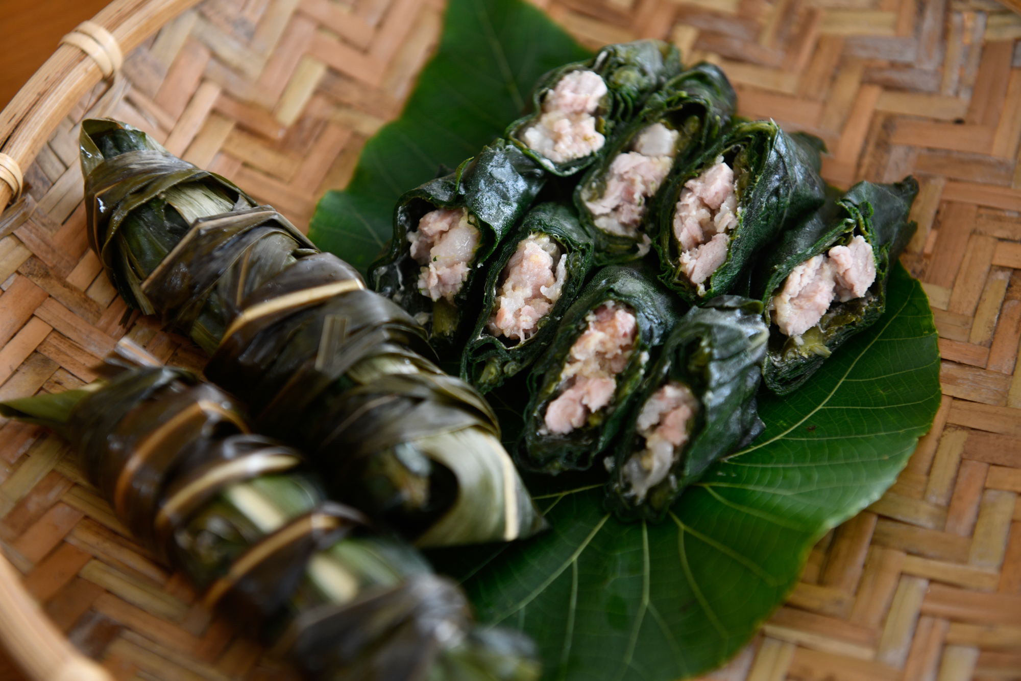 The traditional Paiwan food cinavu is made by wrapping millet and pork in leaves of Trichodesma calycosum.