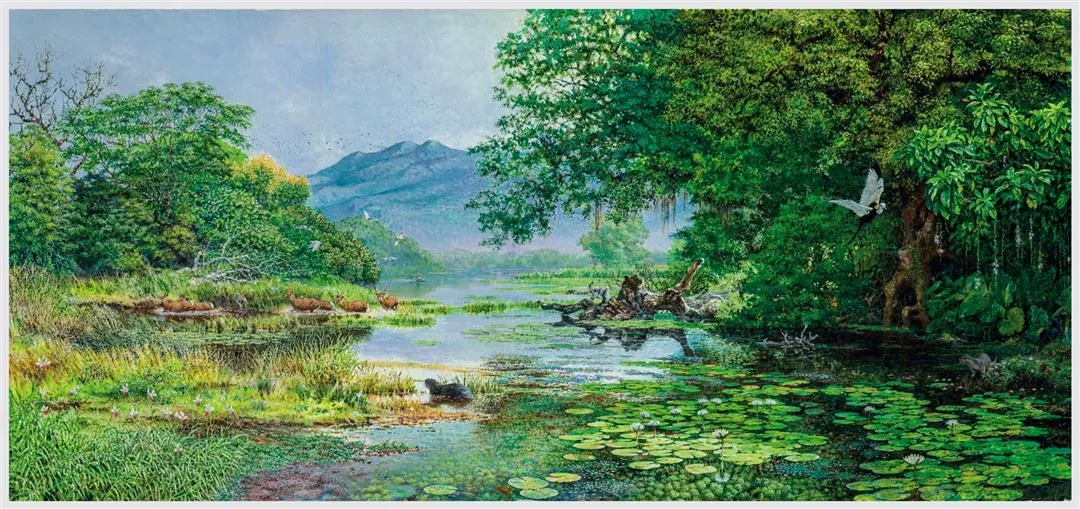 A decade ago he created Primitive Taipei, a painting that depicts the Taipei Basin as it might have looked 500 years ago. Capturing a lost ecosystem required him to rely on his imagination while also applying our scientific understanding of the natural world of that day.