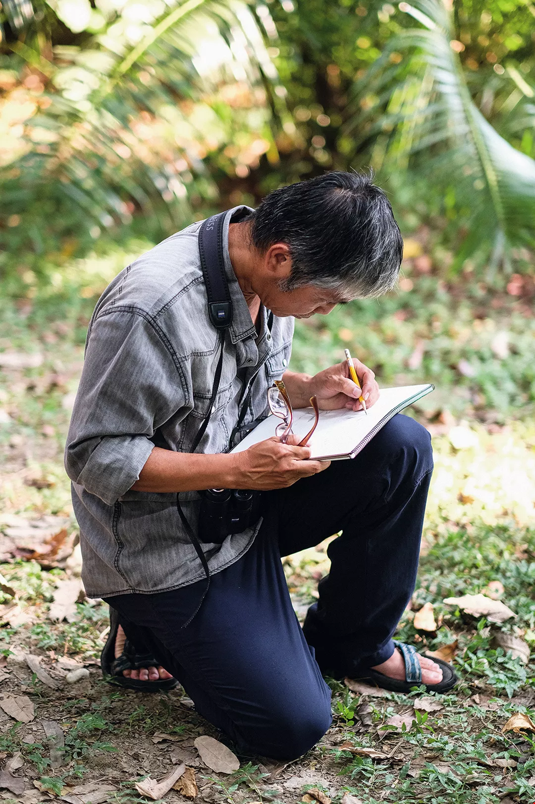 Chen Yi-ming is a pioneer of scientific illustration in Taiwan. He has been engaged in ecological surveys for years and has considerable experience in the field. (photo by Chuang Kung-ju)