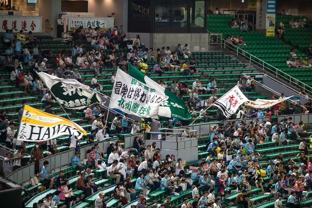 Once the game gets underway, the air of excitement in the stands ratchets up a few notches. Before long, a batter for the Softbank Hawks blasts a home run, and the fans go wild.