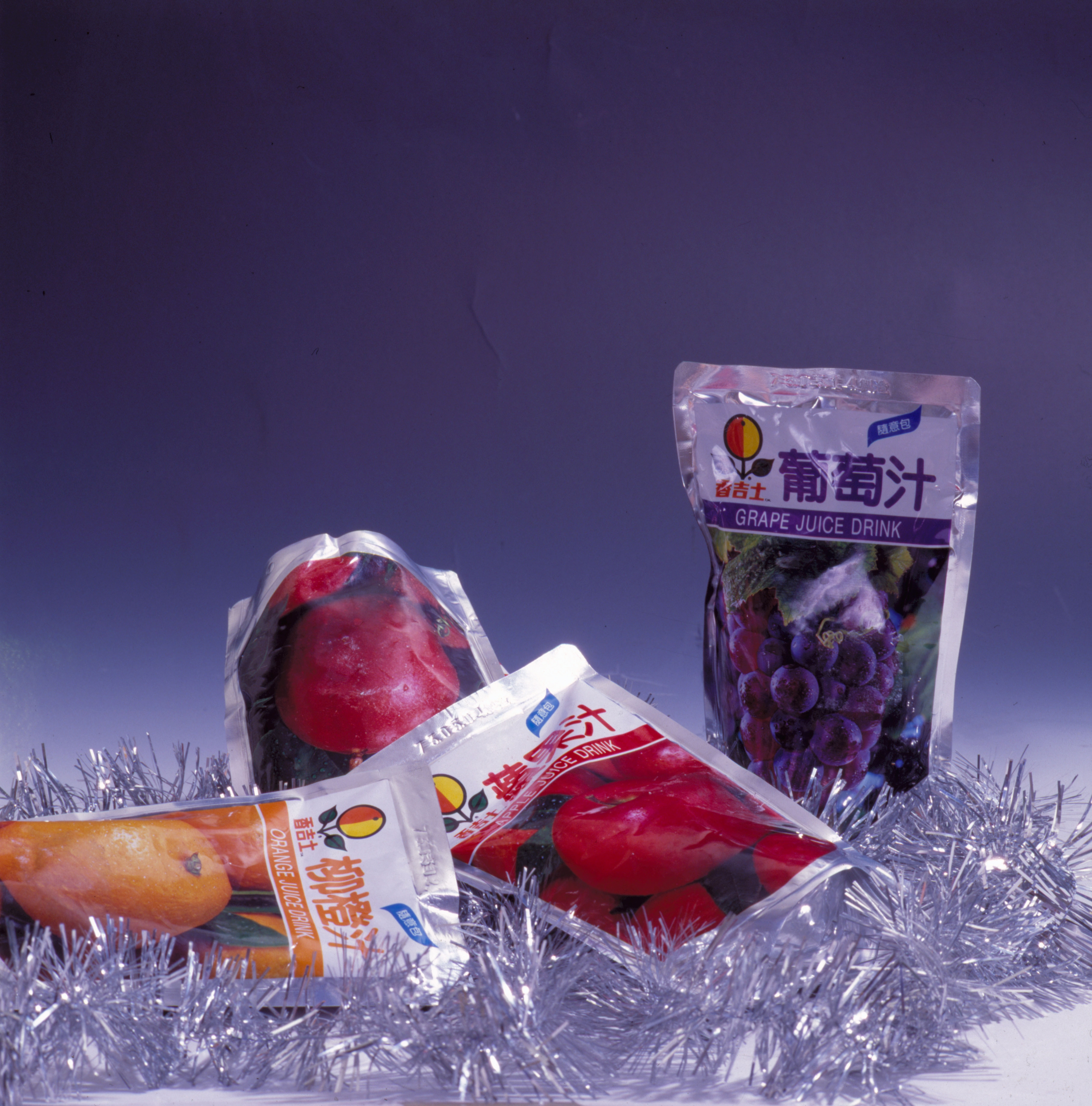 1. The aluminized bag is the latest in novel beverage containers. 2.3. Traditional drinks such as red tea, green grass tea, sour plum juice and star fruit juice are now sold in modern Tetra Brik containers. After sterilization, drinks maintain freshness for a lengthy period of time. 4. Longan tea and coffee, new drinks in Taiwan, are sold in small, flip-top cans.