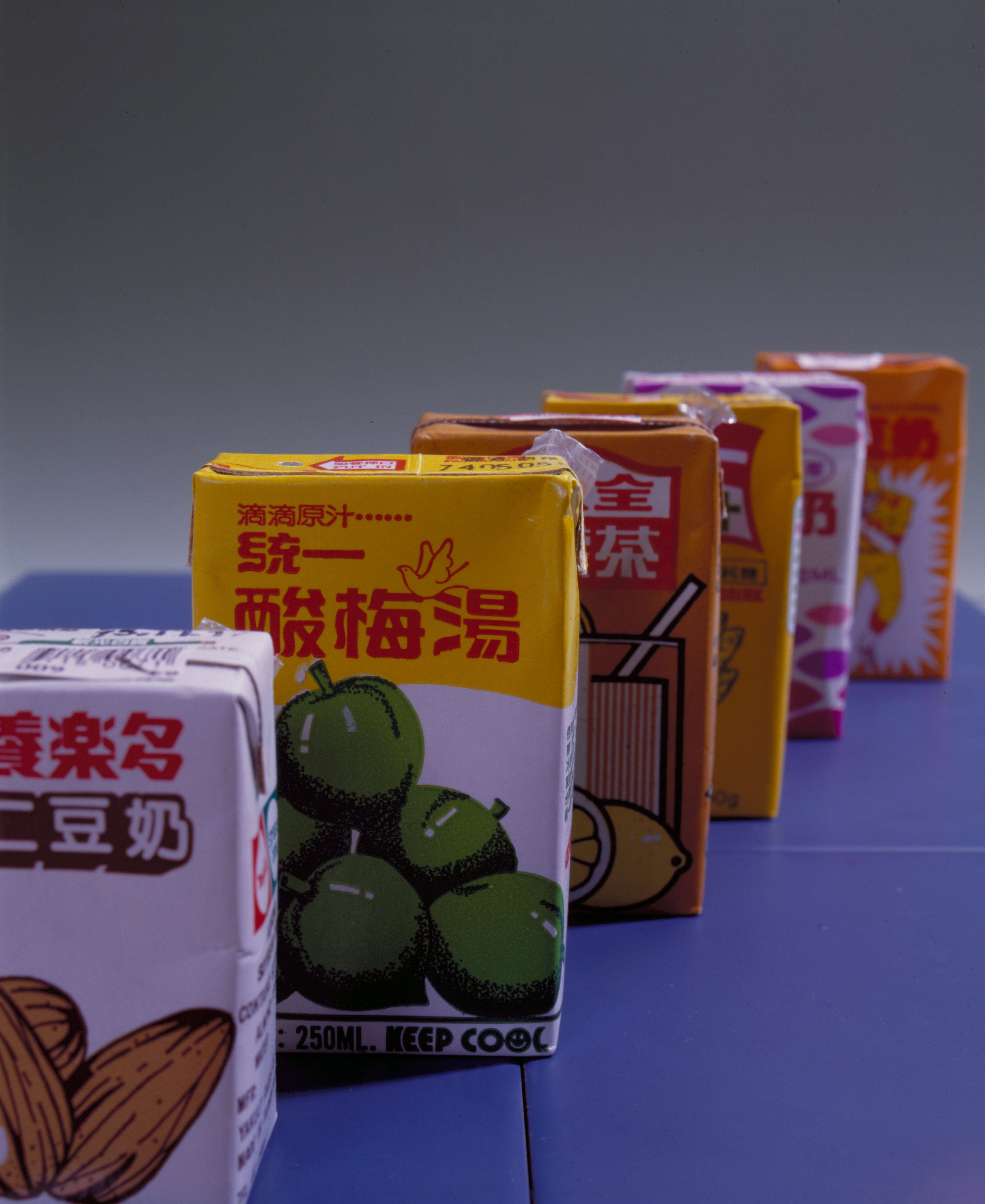 Aluminized paper cartons, called Tetra Brik, were first adopted from Sweden by the President Company for traditional beverages such as asparagus juice, sour plum juice, chrysanthemum tea and winter melon tea. They are made of layers of aluminum foil and DE mounting paper. After sterilization with hydrogen peroxide they are filled and sealed under bacteria-free conditions. In this way the beverage can maintain freshness for a long period of time without the addition of preservatives. The small brick-shaped containers are easy to stack and display, and keep for six months without refrigeration. To drink the beverage, a small straw attached to the side of the carton is poked into a hole at the top. Although unable to withstand the pressure of the CO2 in carbonated drinks, Tetra Brik cartons are widely used for juice and milk beverages.
