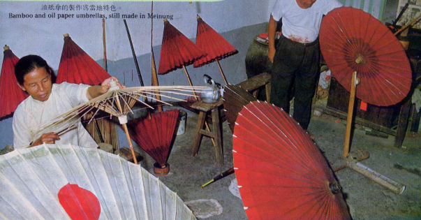 Bamboo and oil paper umbrellas, still made in Meinung