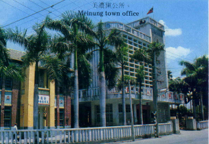 Meinung, a town in the Kaohsiung country of southern Taiwan with plantations of bananas and coconut palms spreading in every direction, is a mixture of things old. It remains little changed in the course of industrialization and modernization of the Republic of China. This serene, beautiful town has a history of about three hundred years and still keeps its original style. Meinung, originally called Minung is well known for its wealth of water resources. It has had its present name of Meinung since 1884. More than 90 percent of its townsfolks are Hakkas whose ancestors came from Kwangtung province. They are loyal, industrious, frugal and honest. These characteristics have been passed down from generation to generation.