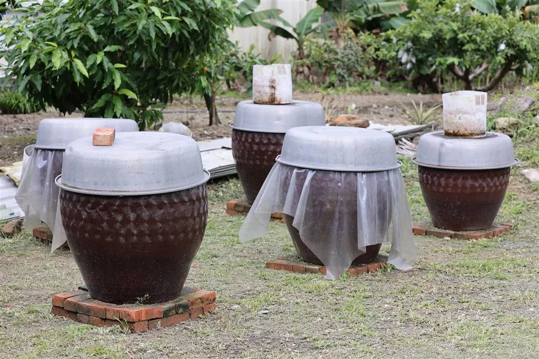 Once placed in jars, the pineapple fermented tofu is brought to the rooftop to bask in the open air and sunshine.
