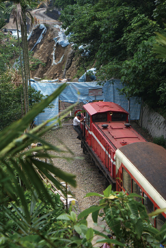 There's nothing unusual about parts of the railway roadbed getting washed away or collapsing. In the past, the Forestry Bureau would repair the damage immediately to get the trains running again ASAP. But under private management, the line was out of service for three whole months, though the collapsed area was only 60 meters long. Only in January of 2009 did the operators arrange for one train to take people up to the nearest station to the break point and another to carry them after the break point. But that meant people had to walk 500 meters, dragging their luggage, along narrow-gauge tracks. The sight of travelers huffing and puffing their way along not only drew the ire of the media, the premier even sent his personal secretary to take photos and find out what was going on.