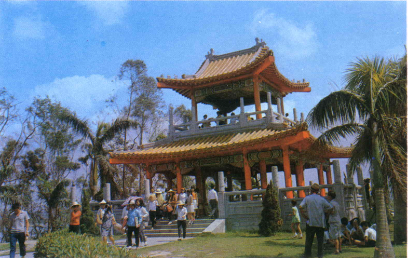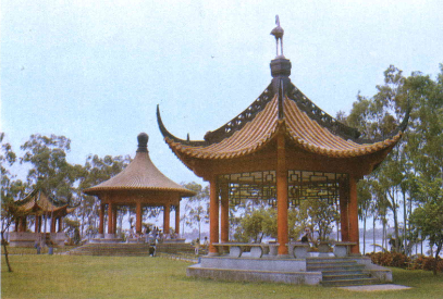 Cheng-ching Lake is a popular scenic spot of southern Taiwan. It is six kilometers from Kaohsiung and four from Fengshan. Ten to fifteen minutes drive will get you there from Kaohsiung. Originally, Cheng-ching Lake was the reservoir of the Kaohsiung Industrial Water Supply Plant and was called Ta-p'i Lake. In 1954, it was reconstructed as a scenic area. Since it contains many beautiful shells, it gained another name-Ta-pei lake which means Big Shell Lake. It was formally opened to tourists in 1959. The water of the lake is always green and clean, so it was given another name-Cheng-ching Lake-meaning clear in 1964. Since then Cheng-ching Lake has attracted countless visitors.