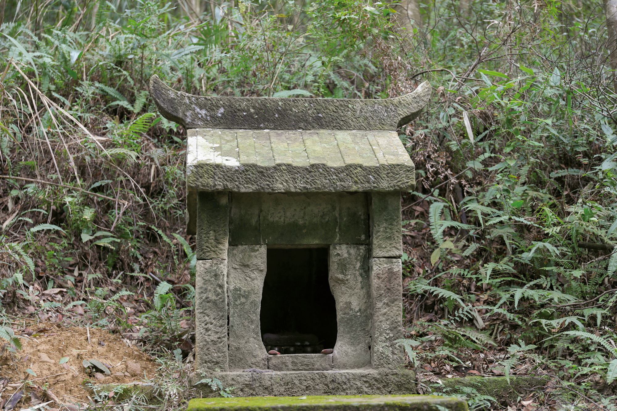 You can see a variety of different Bo Gong shrines in Hengshan Village. There is the simple “Tiantou Bo Gong” shrine next to the fields (tiantou: “head of the fields”) that is made of three slabs of stone. Meanwhile, next to a pond there is the “Fangniu Bo Gong” shrine (fangniu: “to put cattle out to graze”), with an opening shaped like a baoping (a vase-like vessel used in religious ceremonies). In earlier times, when local people watching over their grazing cattle or water buffalo grew tired, they would tie the animals up by the pond and ask Bo Gong to protect them, which is how the shrine got its name.