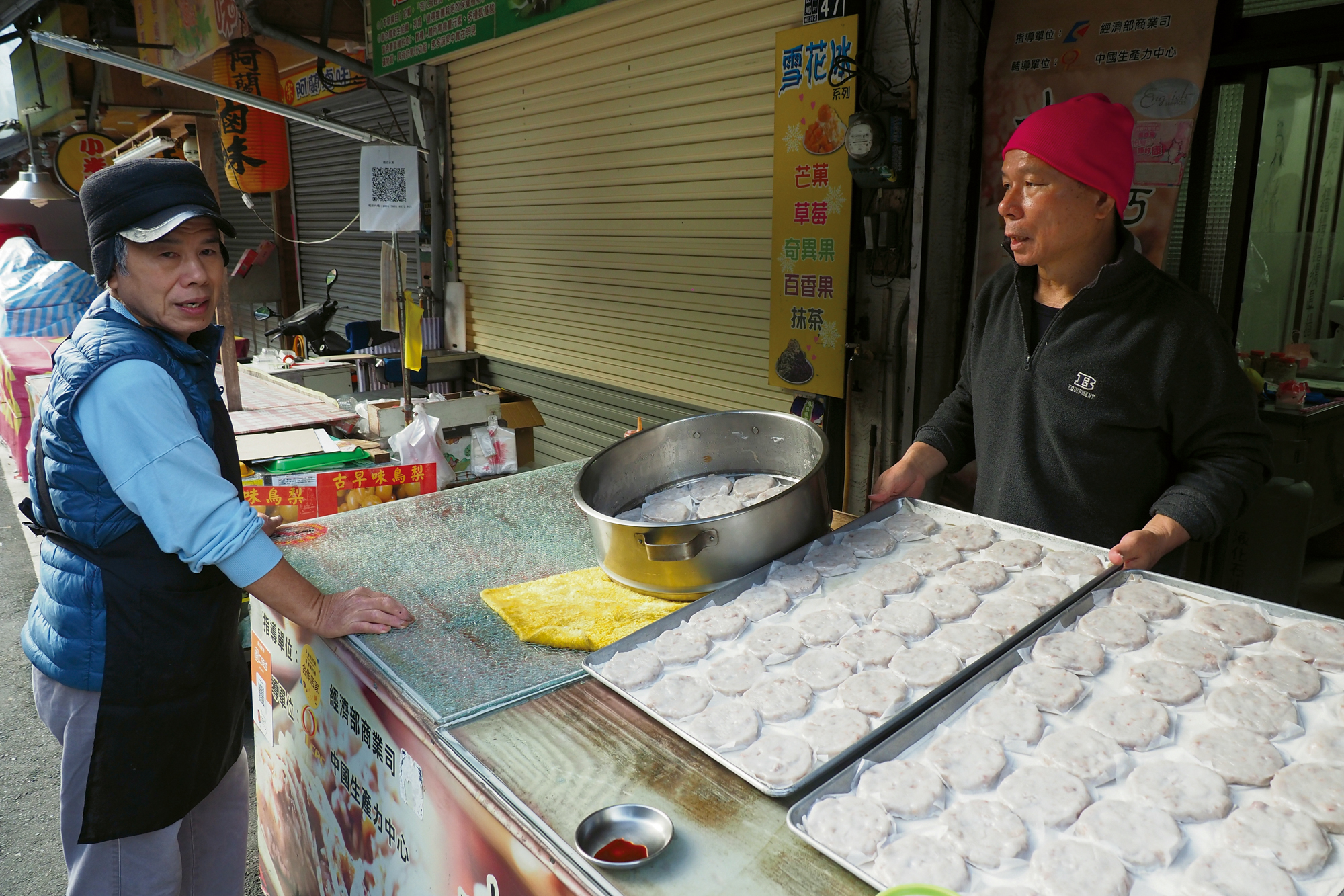 Walking along Neiwan Old Street, one can see many shops selling pickled foods and ban dishes (various foods made from rice). This traditional Hakka cuisine reflects the dietary choices made by early settlers in difficult circumstances. “Farmers working the land would get very hungry by the afternoon, and they used to eat ‘water ban’ [also known as ‘savory rice pudding’], made from rice, with a lot of liquid content, and with pickled daikon radish and other ingredients placed on top. This was very filling.” Chen Yi-szu, who grew up in Jiuzantou, three train stops from Neiwan, returned to her hometown after working in the city. She learned how to make ban foods from her grandmother, at which time she discovered that every Hakka area has its own special ban styles. For example, from an old neighbor, originally from Beipu, who had married into a family in Jiuzantou, she found out that there is peanut flavored ban.