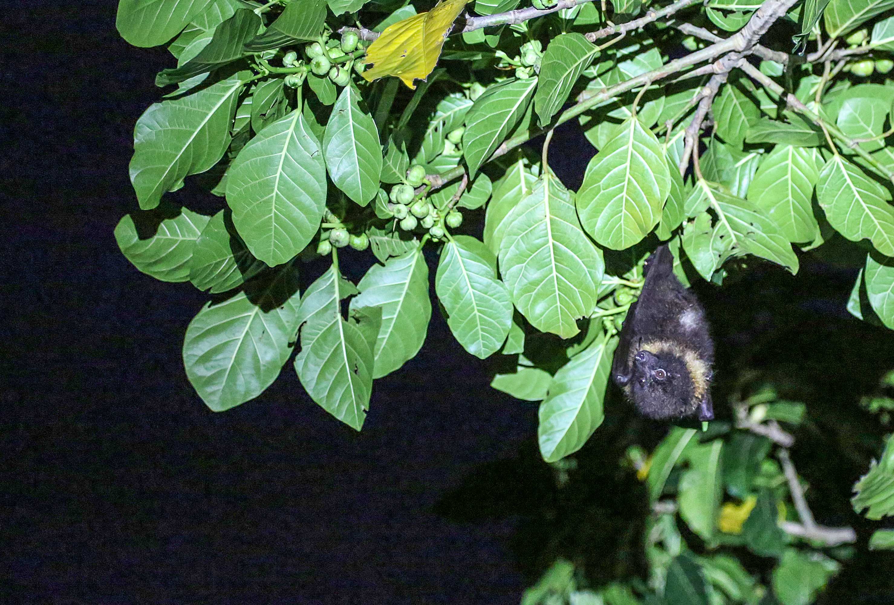 The Formosan flying fox (Pteropus dasymallus formosus) is a kind of fruit bat that is found in Hualien City. Though inconspicuous, these fruit-eating animals are a keystone species for the maintenance and colonization of forest ecosystems. (photo by Cheng Hsi-chi)