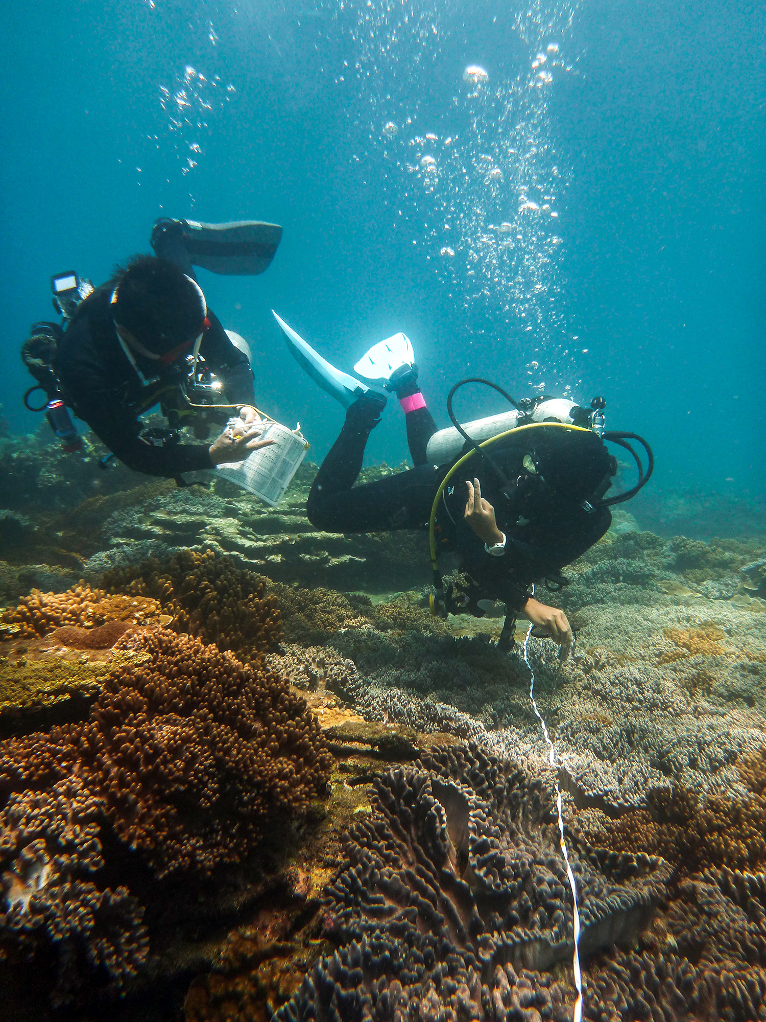 The Taiwan Environmental Information Association has been mobilizing volunteer divers to survey the health of coral reefs in the seas around Taiwan. (photo by Hsiao Yi-chen, courtesy of TEIA)