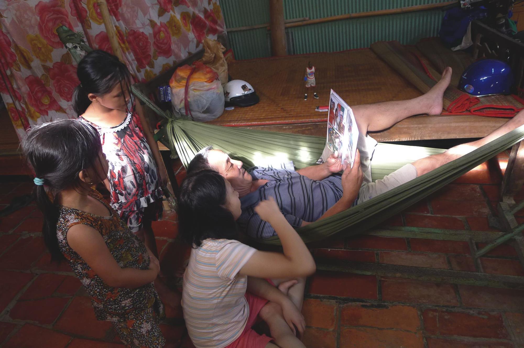Before setting out, Tsai Hui-ting had photos of Ah-ran and her daughter printed. She then brought them to the child’s maternal grandfather in Vietnam. Long separated, the family happily gathered around the grandfather’s hammock to look at the photos.