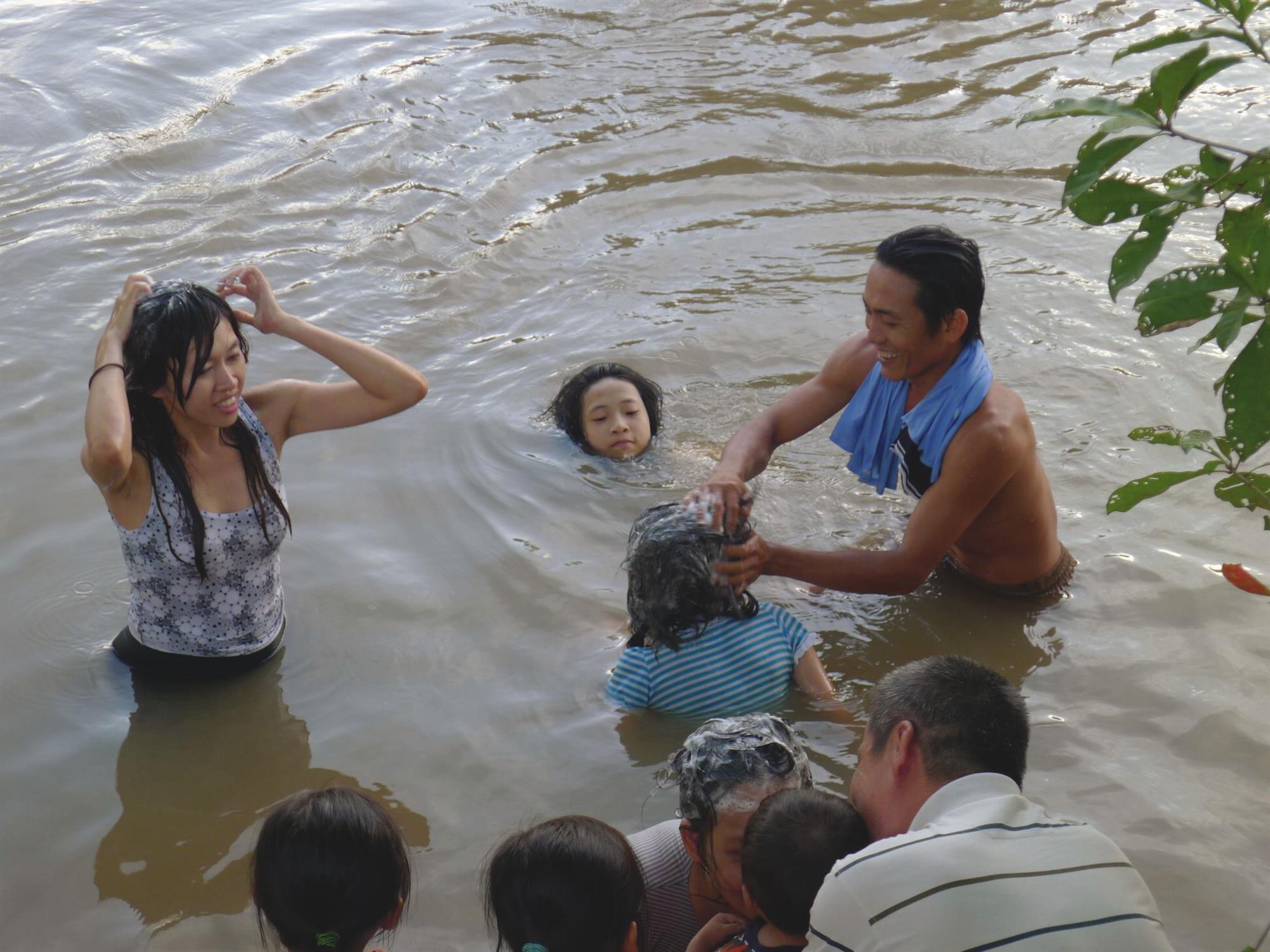Tsai hesitated for several days before finally jumping into the river in front of Ah-ran’s home, bathing and enjoying the water together with Ah-ran’s family.