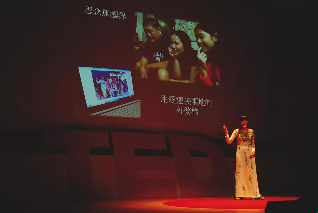 On the TEDxYouth@Taipei stage, Tsai tells of her experiences on the Grandmother’s Bridge trip.