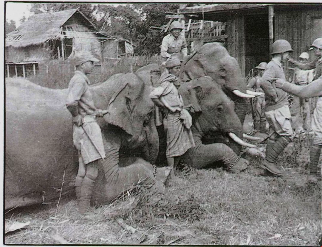 The elephant transport team, acquired by the army in the Burmese theater during World War Ⅱ. (photo courtesy of Luo Chao-chun)