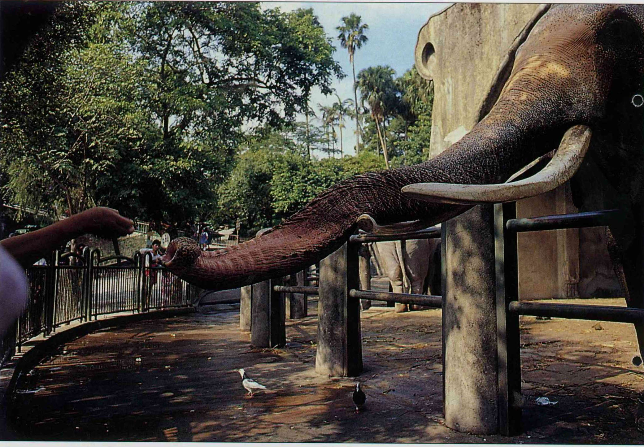Linwang's nimble proboscis, with which he nips snacks from visitors' hands, is the very same "hand" with which he labored in the jungles duringthe war. (photo by Fu Chun)