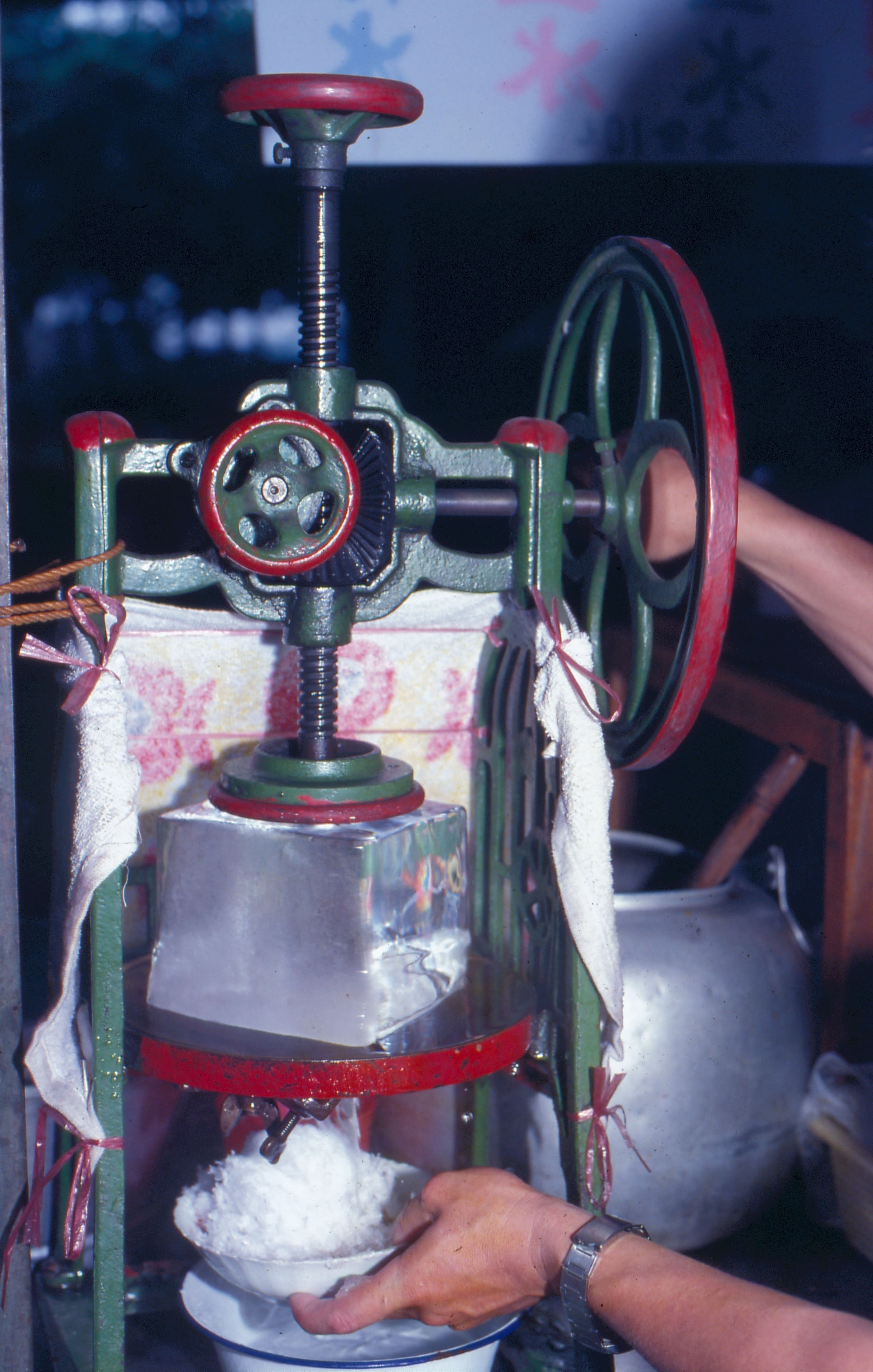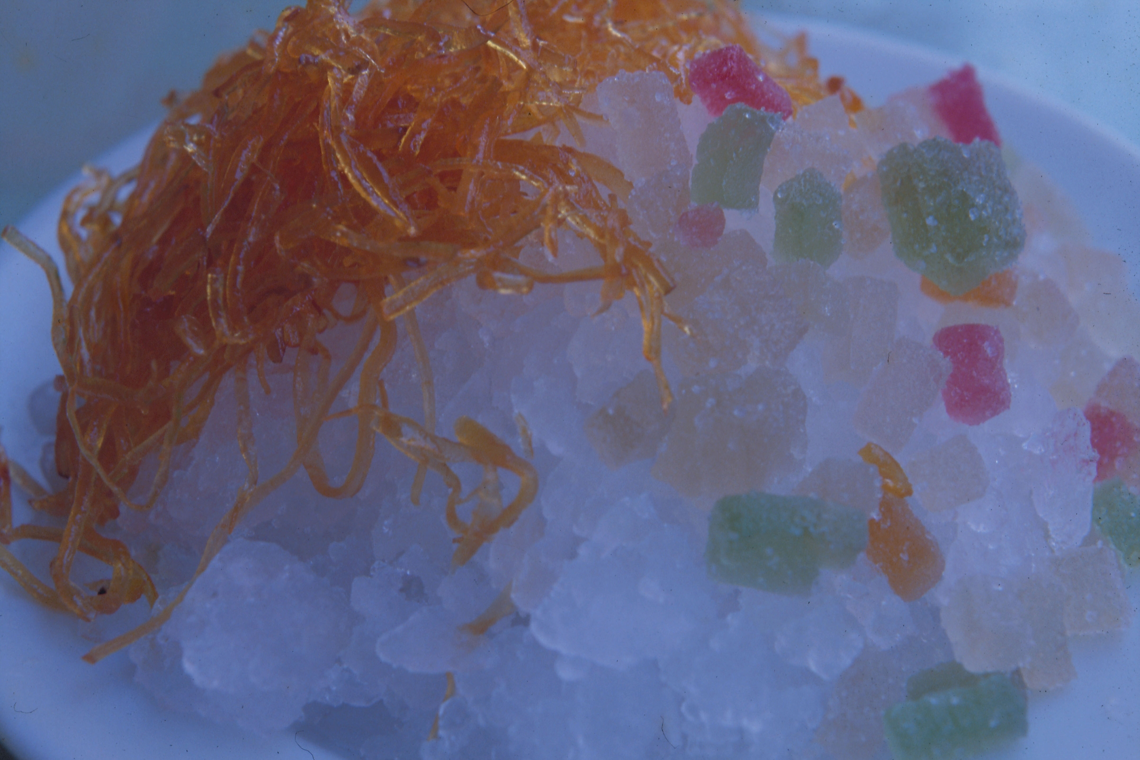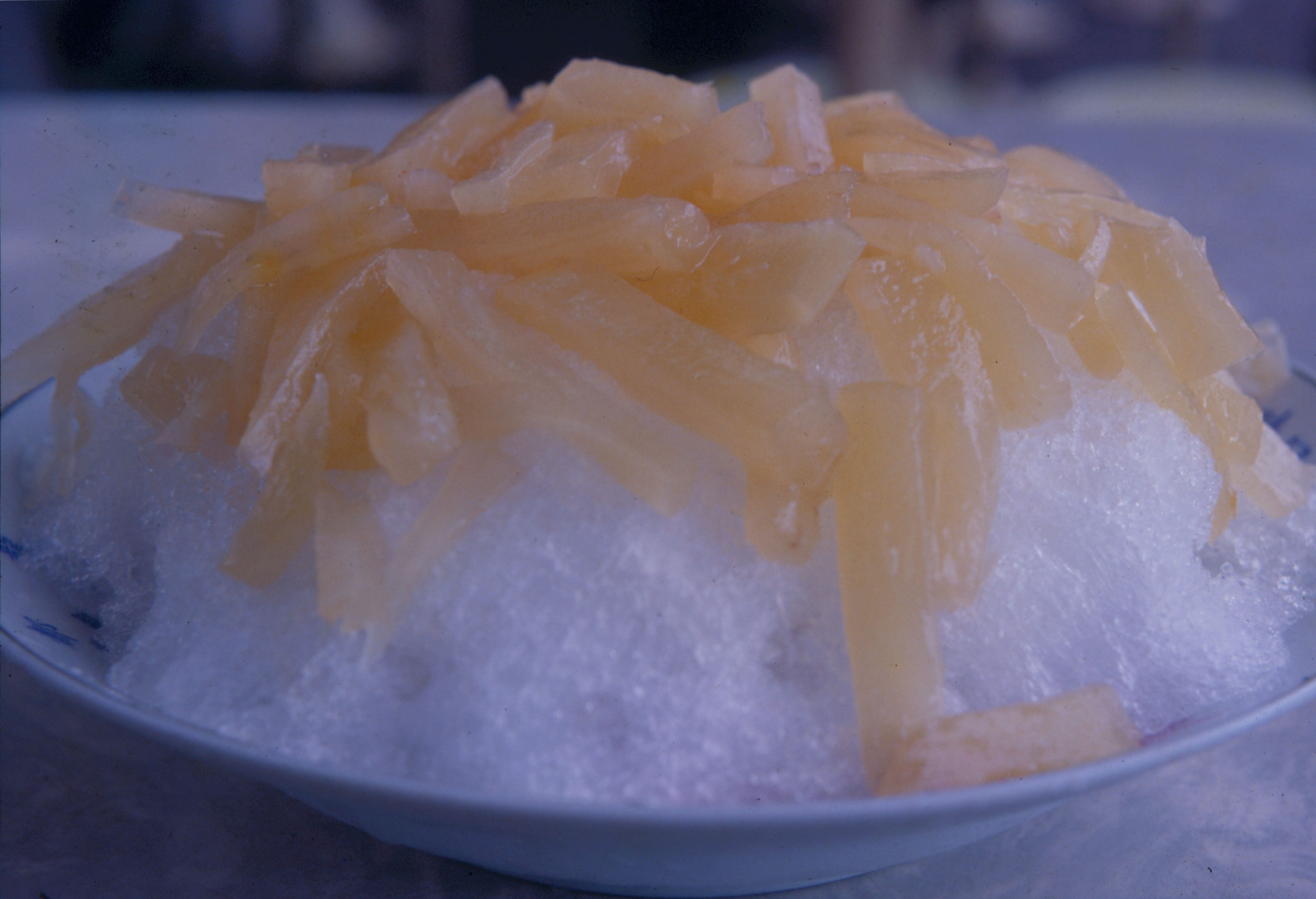 Twenty to thirty years ago, when refrigerators were still a rarity in Taiwan, the traditional sweetened ices of China were regarded as a special treat by children. Even though refrigerators are almost universal in households today, people still look forward to eating the ices as summer approaches. With many additions being available to the traditional scraped ice of earlier times, the familiar dessert has become a delicacy entirely suited to modern times.