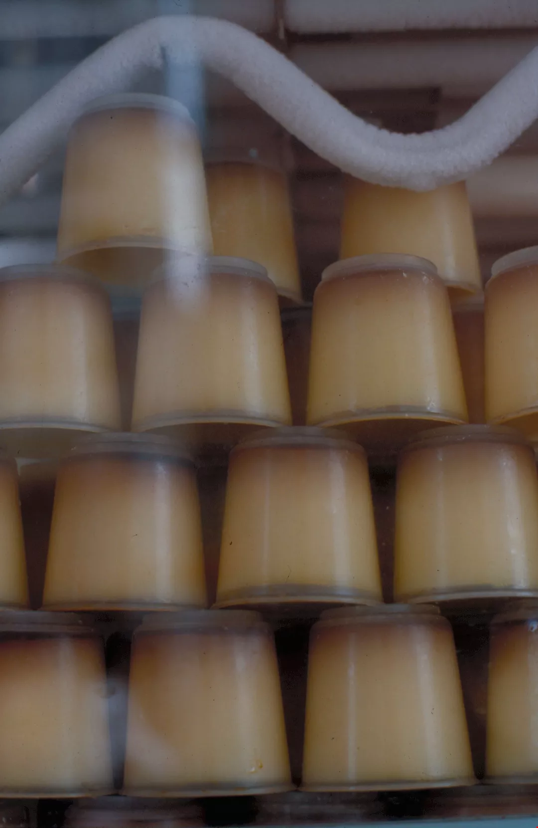 9. A pudding pyramid on sale in an ice shop.