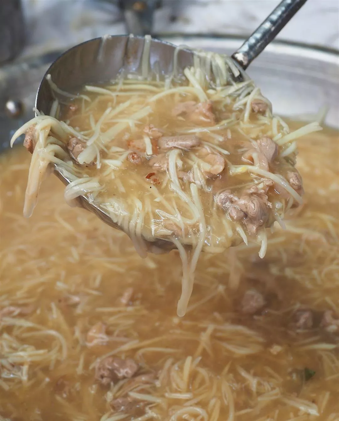 The thick duck-meat soup served in the temple courtyard, made using shredded crispy bamboo stir-fried with fresh duck meat and a broth thickened with sweet-potato flour, is a can’t-miss dish for tourists.