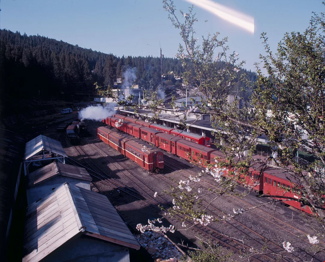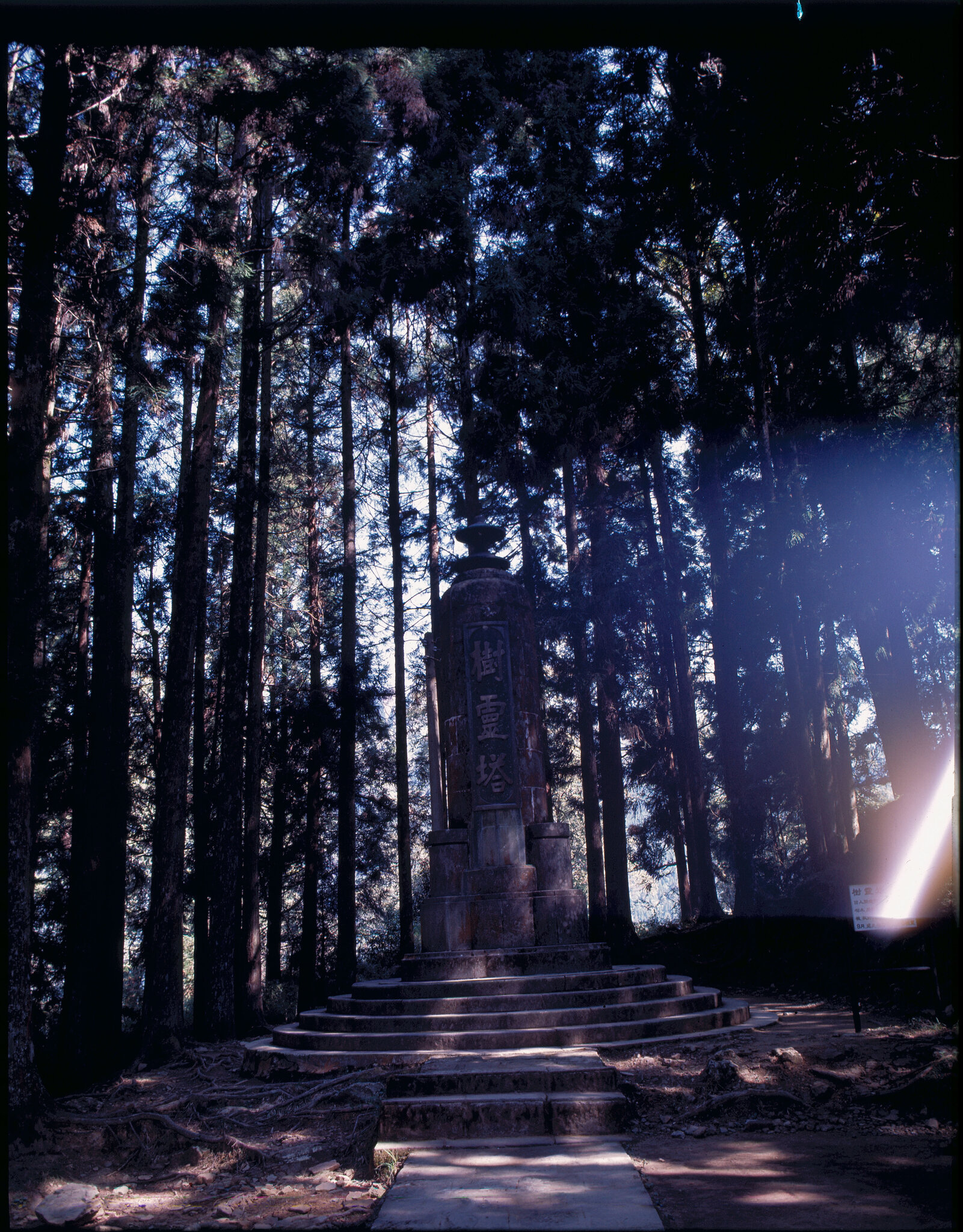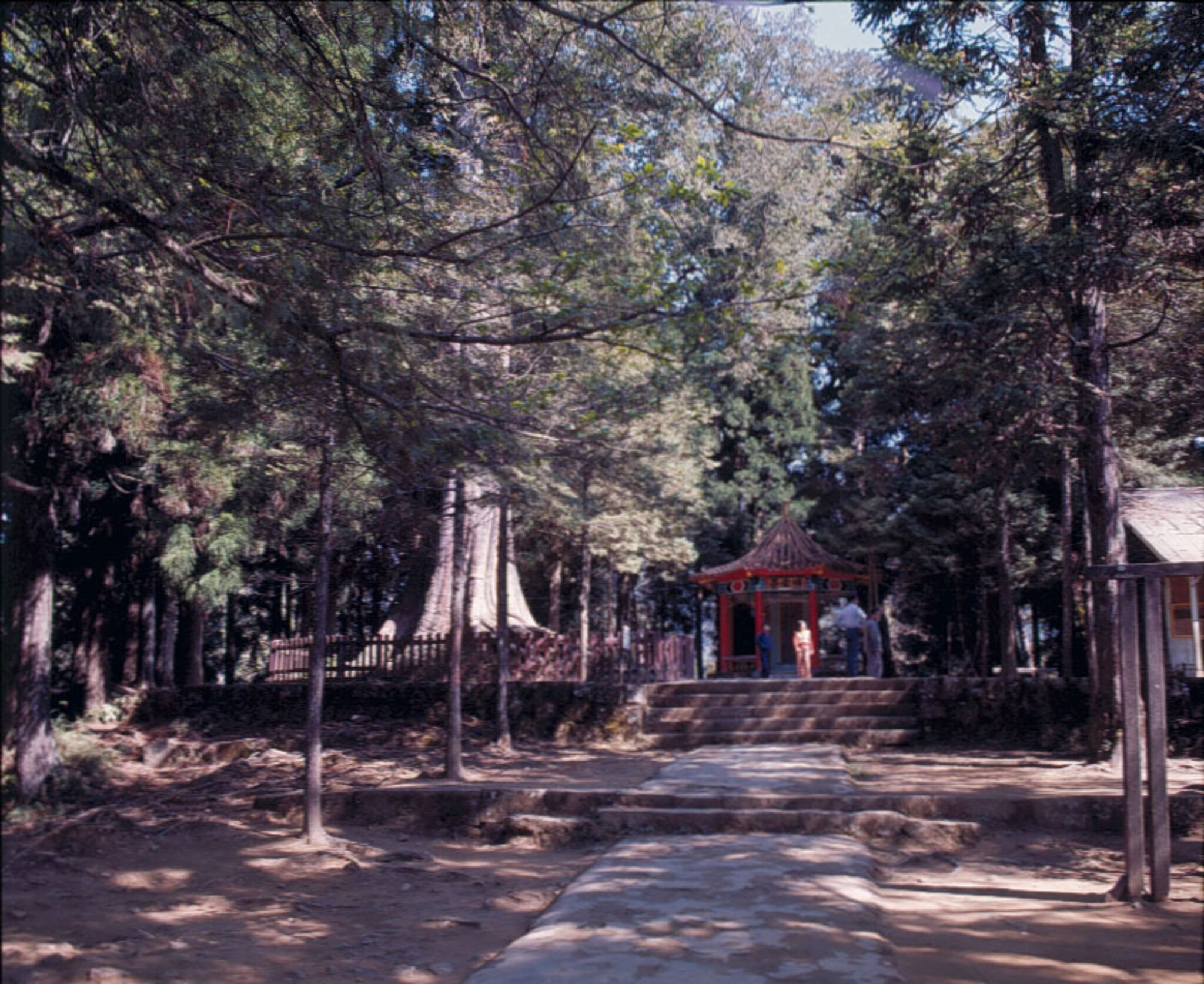 It takes four hours for the trip from Chiayi to Alishan station. Along the railroad, places worth seeing are many. Near the midway station-Fen-chi Lake, square bamboo and one-leaf orchids cover the land. Beyond the Pingchena Station is an open field of flowers. The Giant Tree Station has an elevation of 2,150 meters. The giant tree is Chinese cypress, more than 50 meters high, with a circumference of 34.3 meters. Though about 3,000 years old, the tree is still alive. The next stop beyond it is the end of the railroad-- Alishan Station.