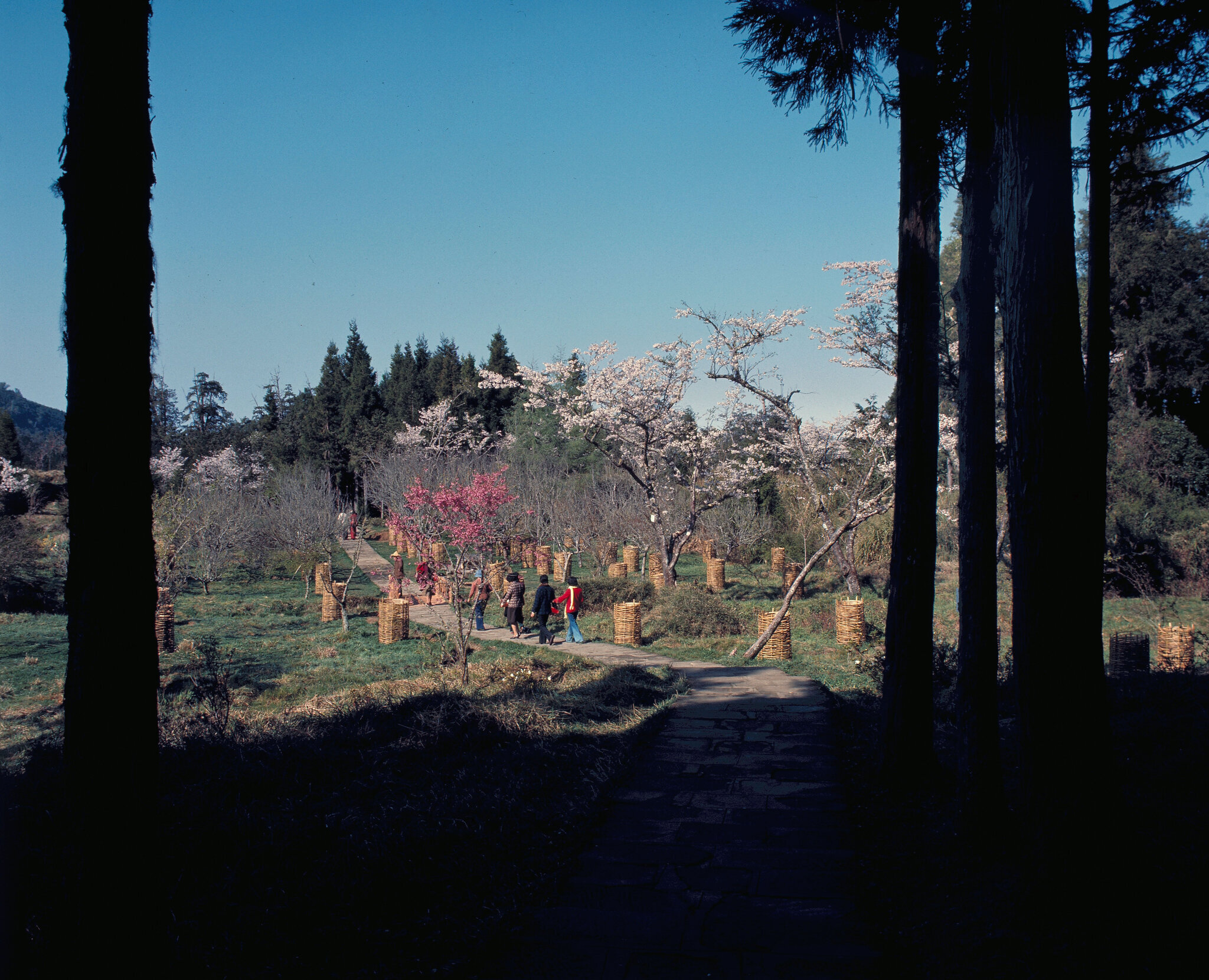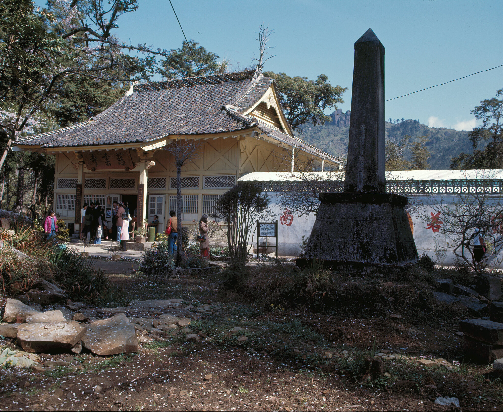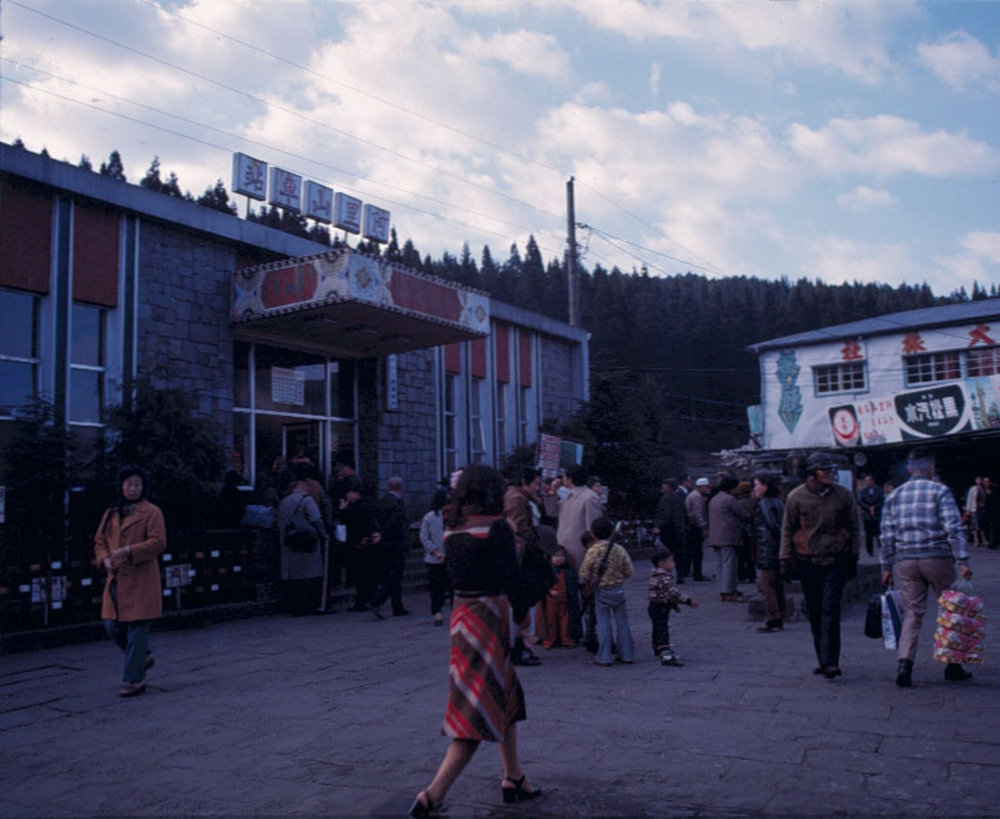 It takes four hours for the trip from Chiayi to Alishan station. Along the railroad, places worth seeing are many. Near the midway station-Fen-chi Lake, square bamboo and one-leaf orchids cover the land. Beyond the Pingchena Station is an open field of flowers. The Giant Tree Station has an elevation of 2,150 meters. The giant tree is Chinese cypress, more than 50 meters high, with a circumference of 34.3 meters. Though about 3,000 years old, the tree is still alive. The next stop beyond it is the end of the railroad-- Alishan Station.