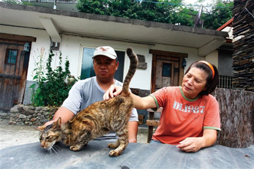 Bao Taide and Gu Xiulian, husband and wife, are deeply attached to the mountains, and have no regrets about all the effort they put into eco-tourism in Ali before the disaster set everyone back to square one. The owner of the cat in the picture hasn't returned in days, and its hungry look is heartrending.