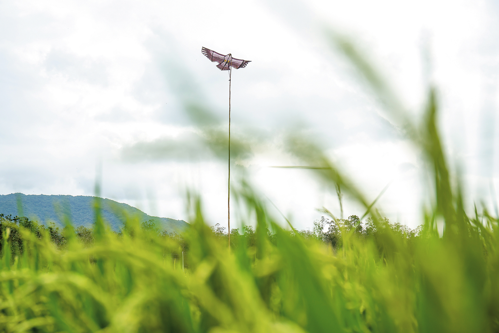 One technique used in organic agriculture is to set up hawk-shaped kites to scare away small birds that eat rice grains.
