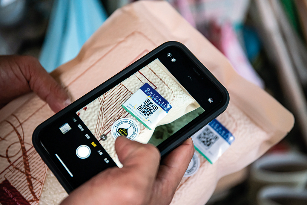 Each bag of rice has its own code number. Using blockchain technology to record the products shipped each day guards against falsification of data.