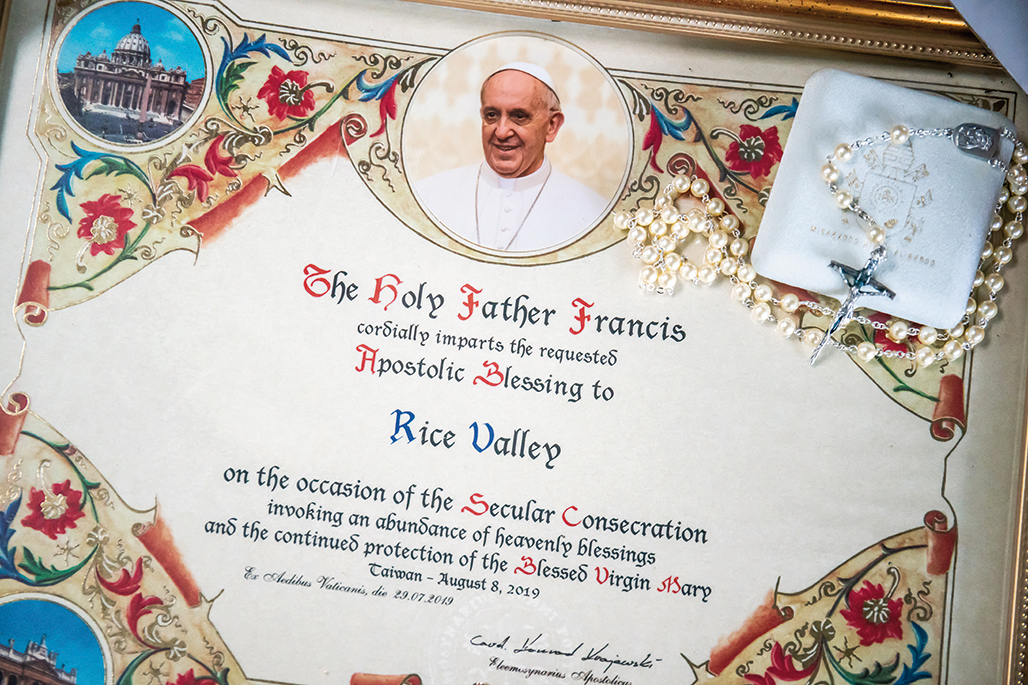 In August of 2019, Wei was inspired by the book The Man Who Sent Rice to the Pope, by the Japanese rural civil servant Josen Takano. Believing that the Kaohsiung 139 rice he cultivates is every bit as good as the Japanese Koshihikari cultivar, he got the crazy idea of delivering some to the Vatican. On his behalf, the ROC Embassy to the Holy See gained an audience with Cardinal Konrad Krajewski, who accepted the rice and said that it was just in time for use in the Pope’s after-mass lunch. Pope Francis even sent Wei an apostolic blessing parchment and a crucifix in return, and expressed appreciation for his goodwill.