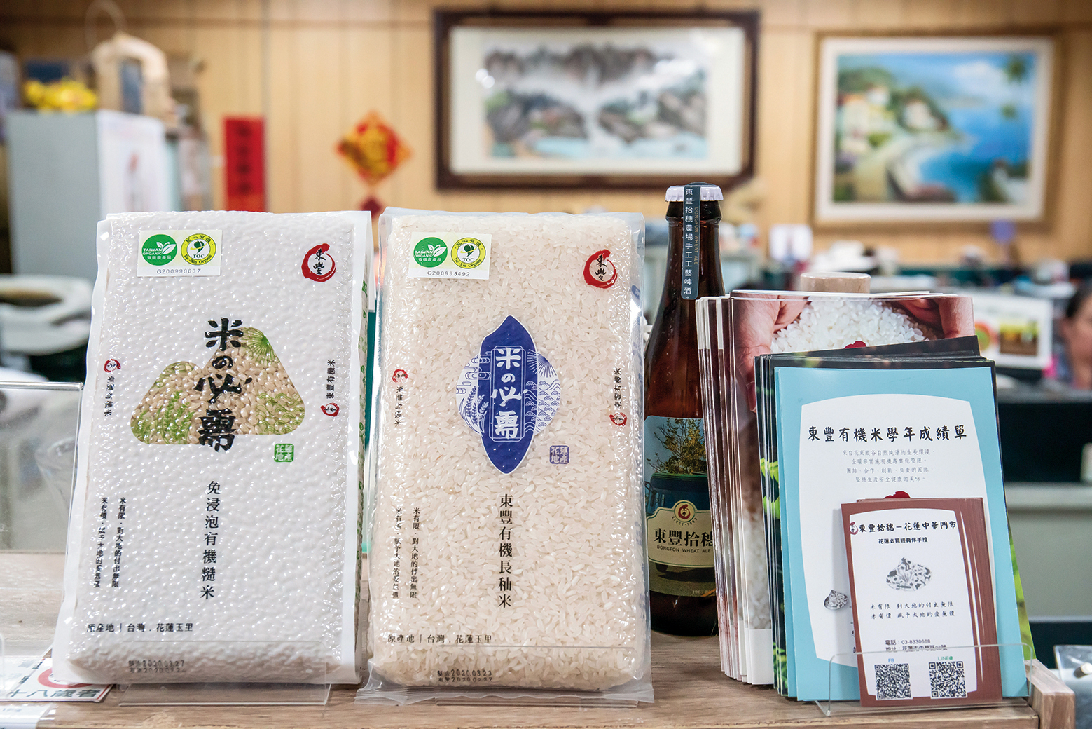 Tseng Kuo-chi has established the “Dongfon” brand to market the rice and beans grown by the cooperative.