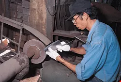 Kinmen kitchen knives, made from pieces of artillery shells or shrapnel, are all shaped by hand.