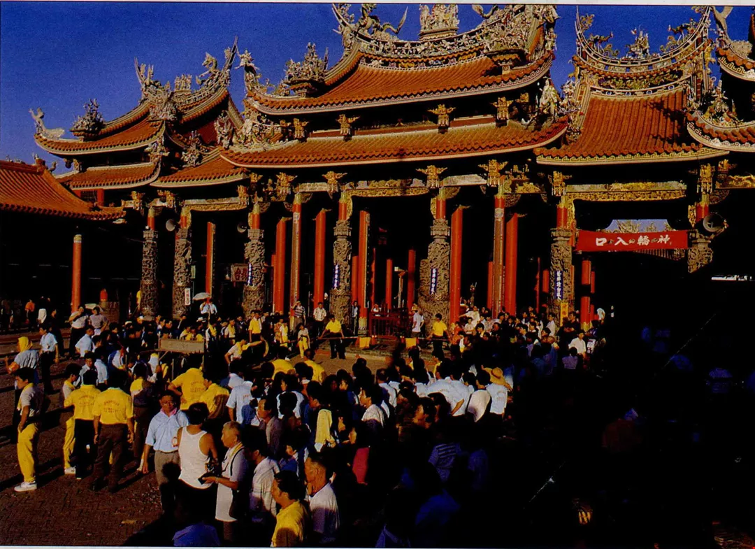 Each year at the middle of the sixth lunar month Wen Wangyeh, the deity who resides in Yunglung Temple in Tainan, leads the local people out to receive the Inspecting King as this "high official" disembarks on his far-ranging round of inspection, followed by his retinue of abandoned souls. Neither the host Wen Wangyeh nor the other invited deities dare to treat the Inspecting King's arrival lightly, and their seven or eight palanquins bob regularly up and down like boats at a quayside.