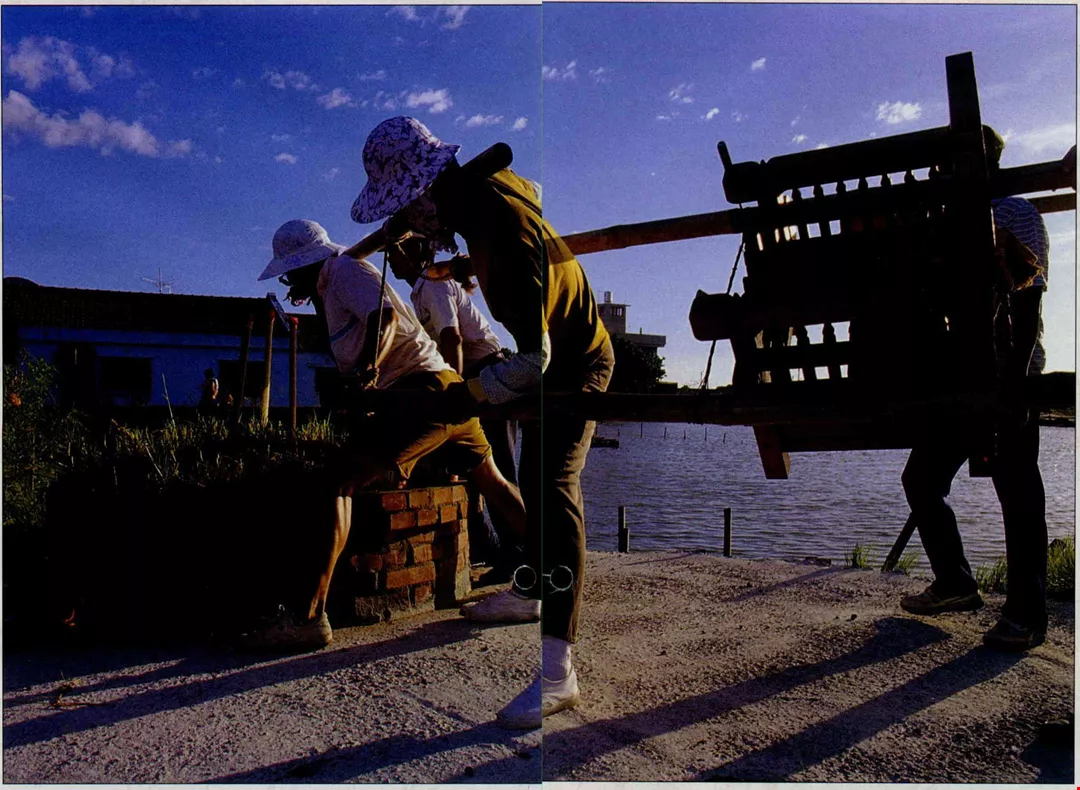 Under a broad sky, women slowly push small barrows or carry shoulder poles loaded with sacrificial gifts and bundle upon bundle of golden spirit money to offer in veneration of the deities and silver money for the demons. They line them up in long rows by the salt pans along the banks of the river mouth. When the sound of firecrackers drifts from the village, a murmur arises among the women: "He's coming! Come and meet the In-specting King!"